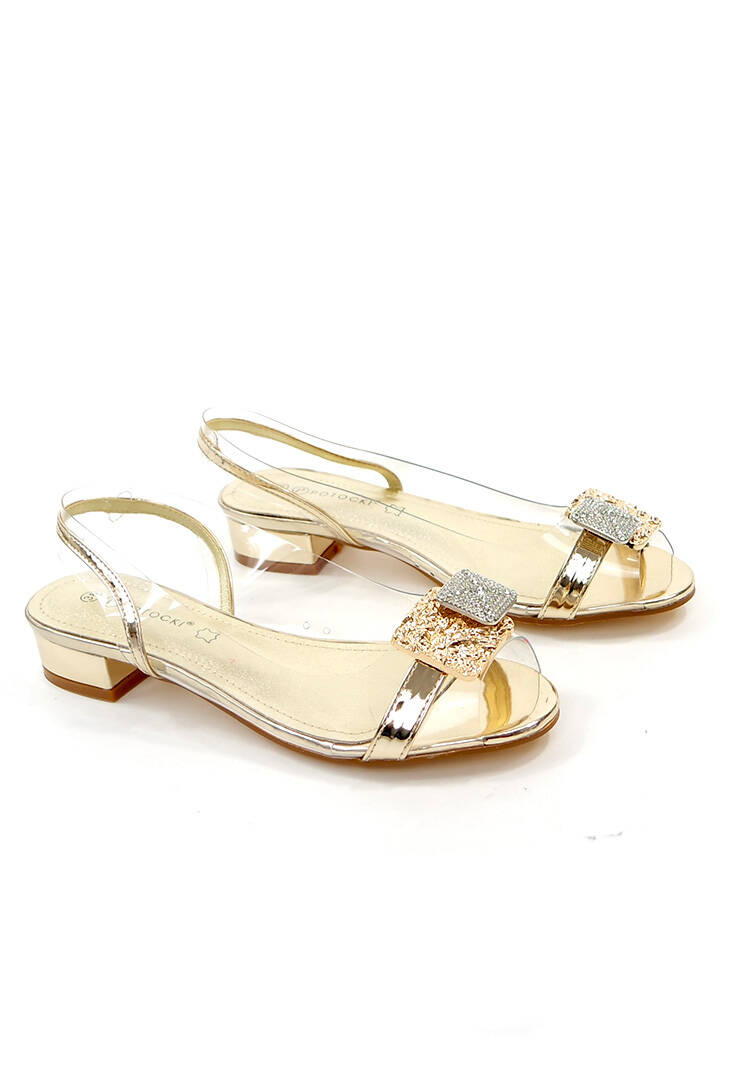 Damskie niskie transparentne przezroczyste złote sandały