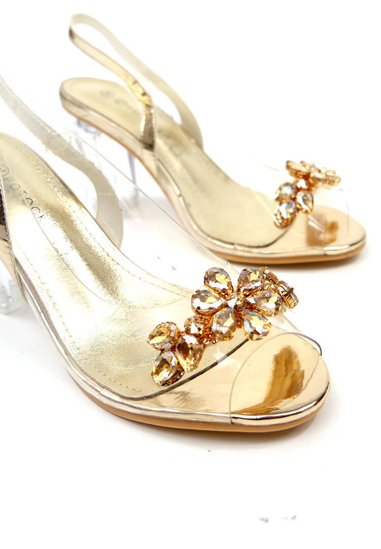 Opinie o Damskie transparentne przezroczyste złote sandały na słupku