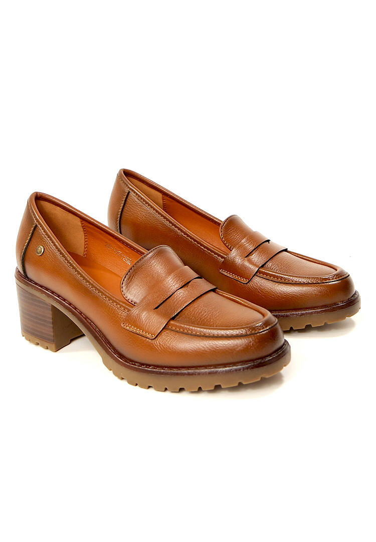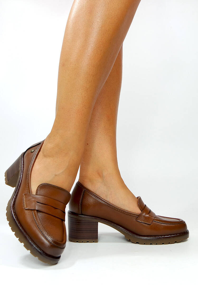 Opinie o Damskie brązowe półbuty klocek Potocki