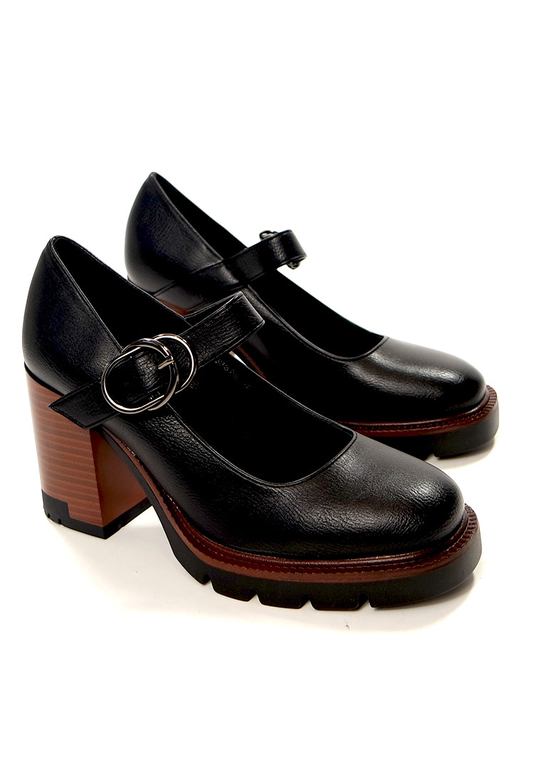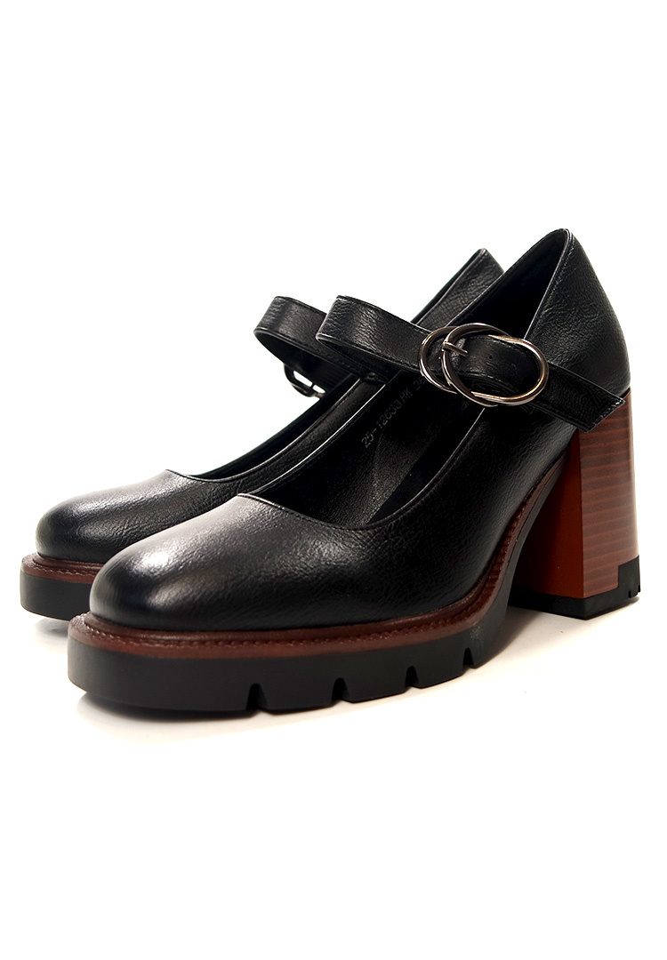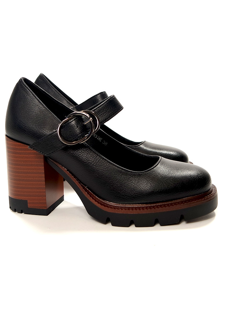Opinie o Damskie czarne półbuty z paskiem wysoki słupek Potocki