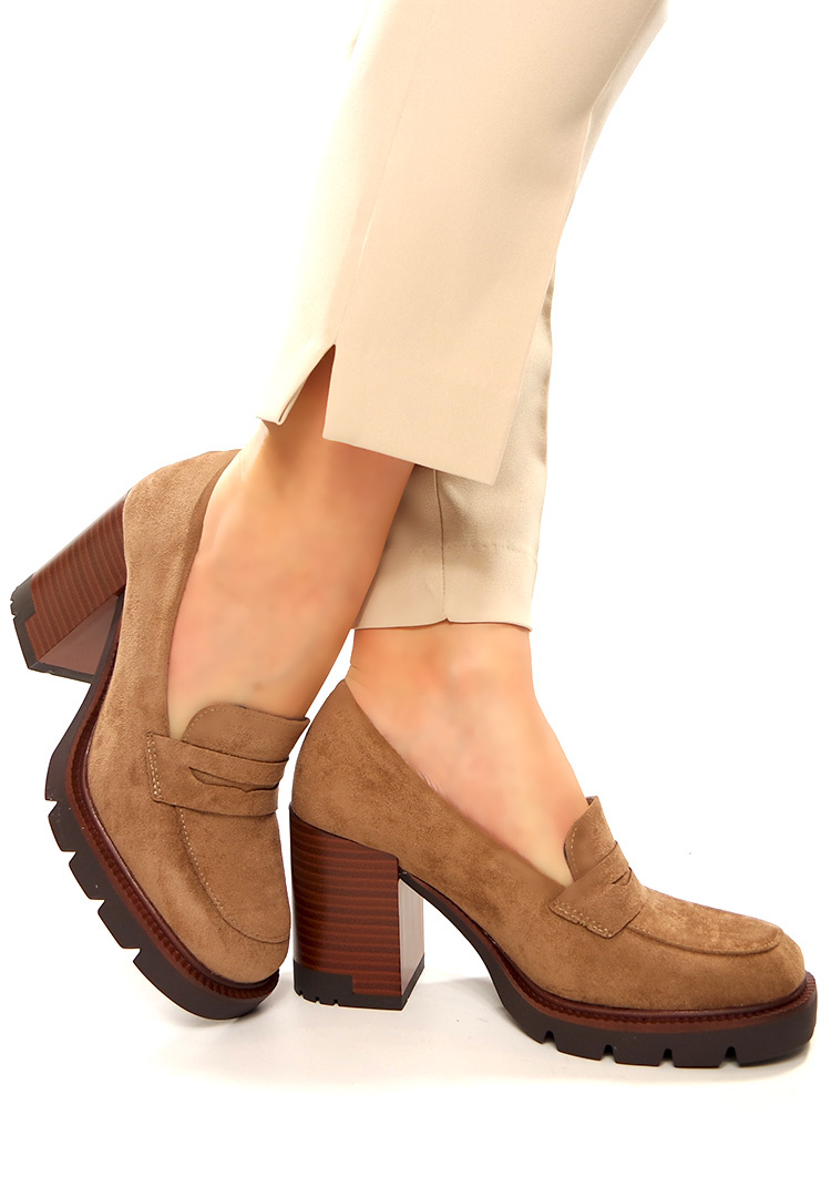 Damskie brązowe półbuty czółenka na szerokim wysokim słupkuPotocki