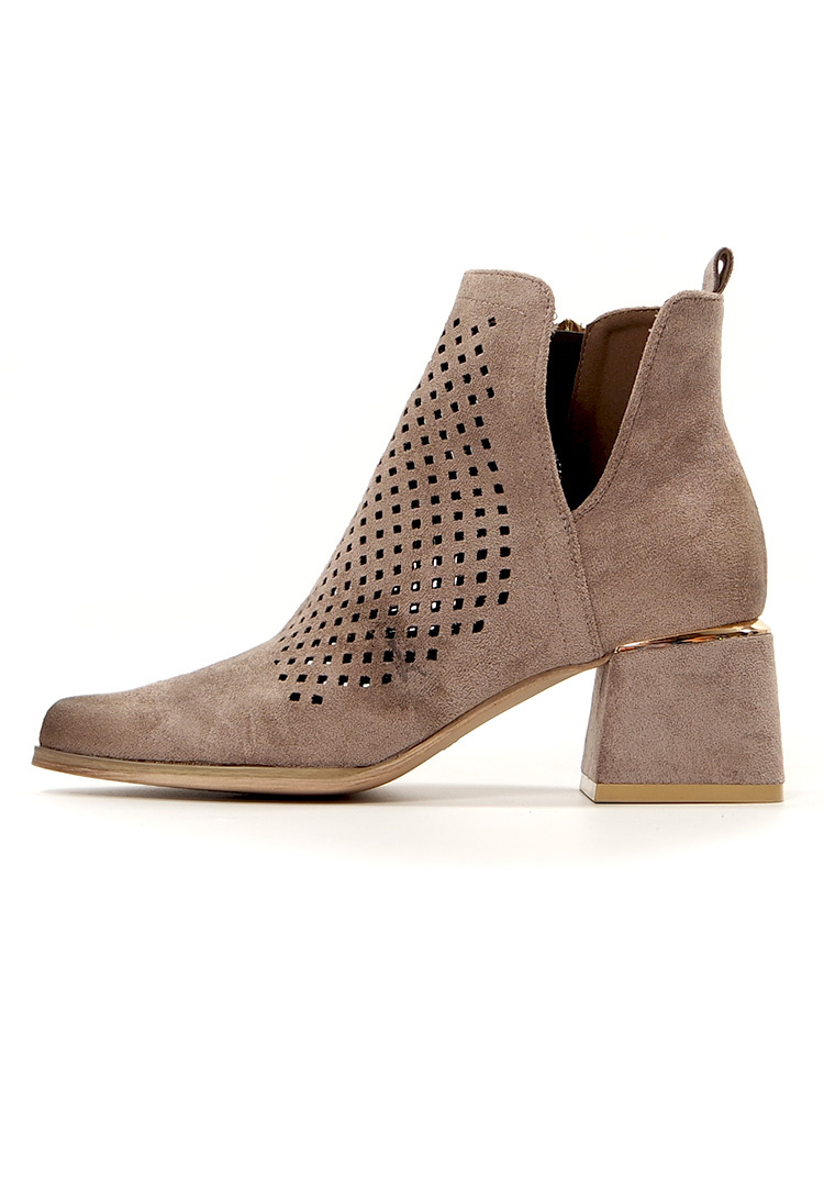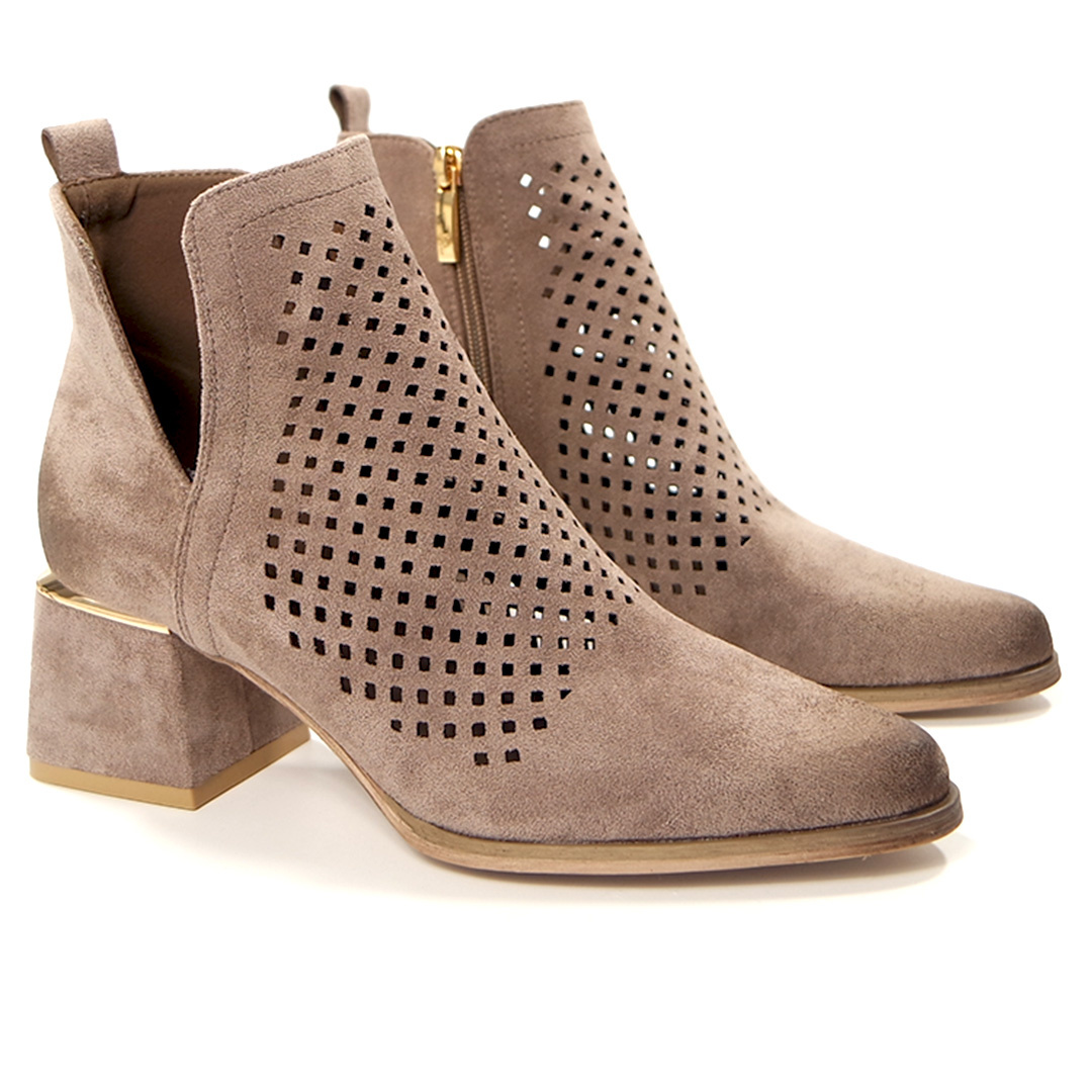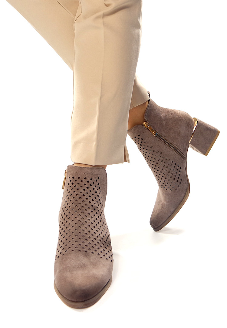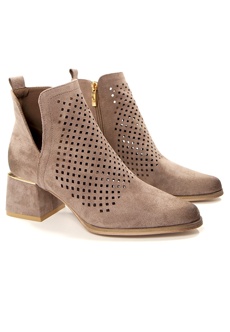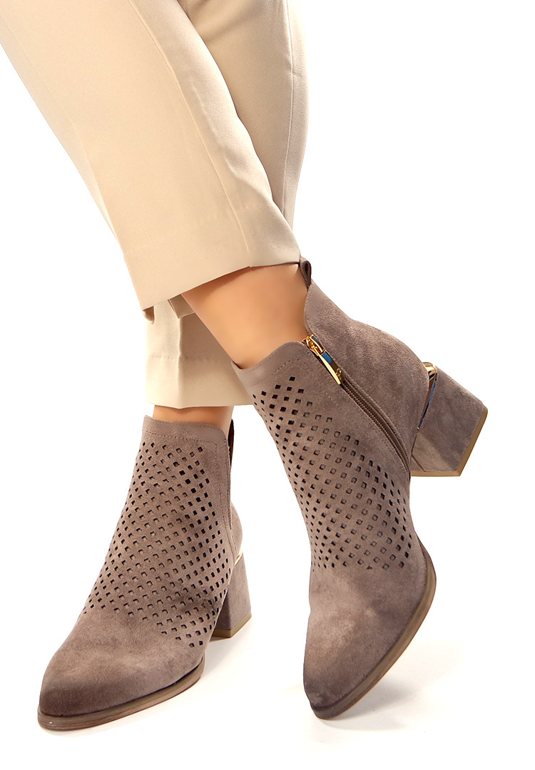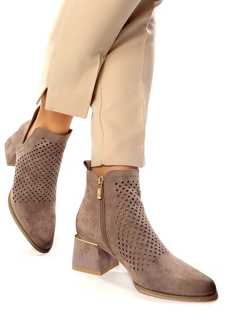 Damskie beżowe khaki ażurowe botki kowbojki na obcasie Potocki