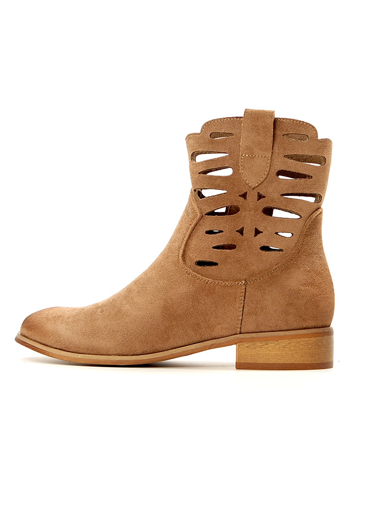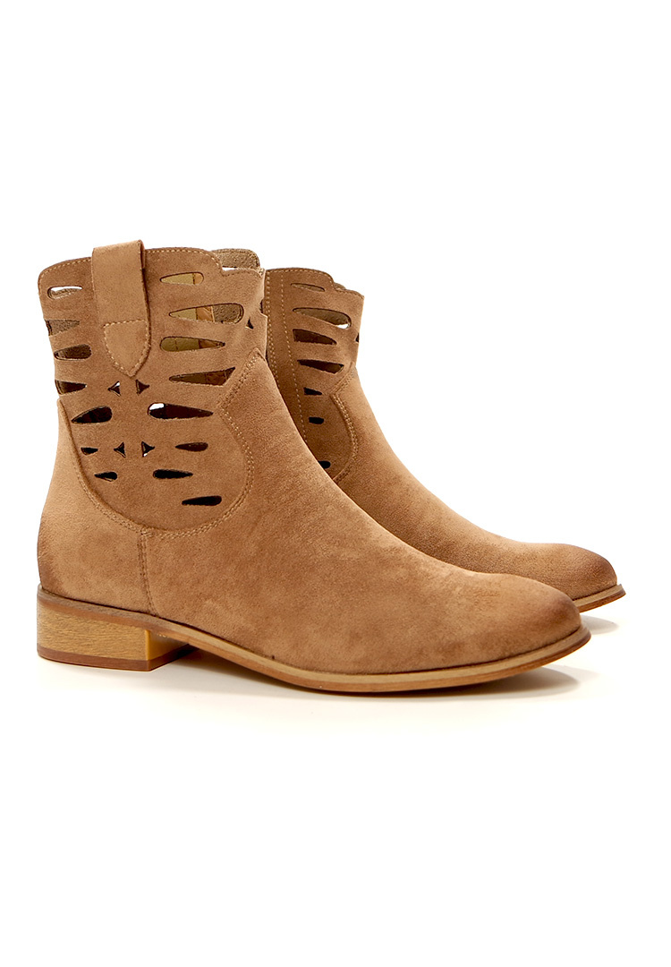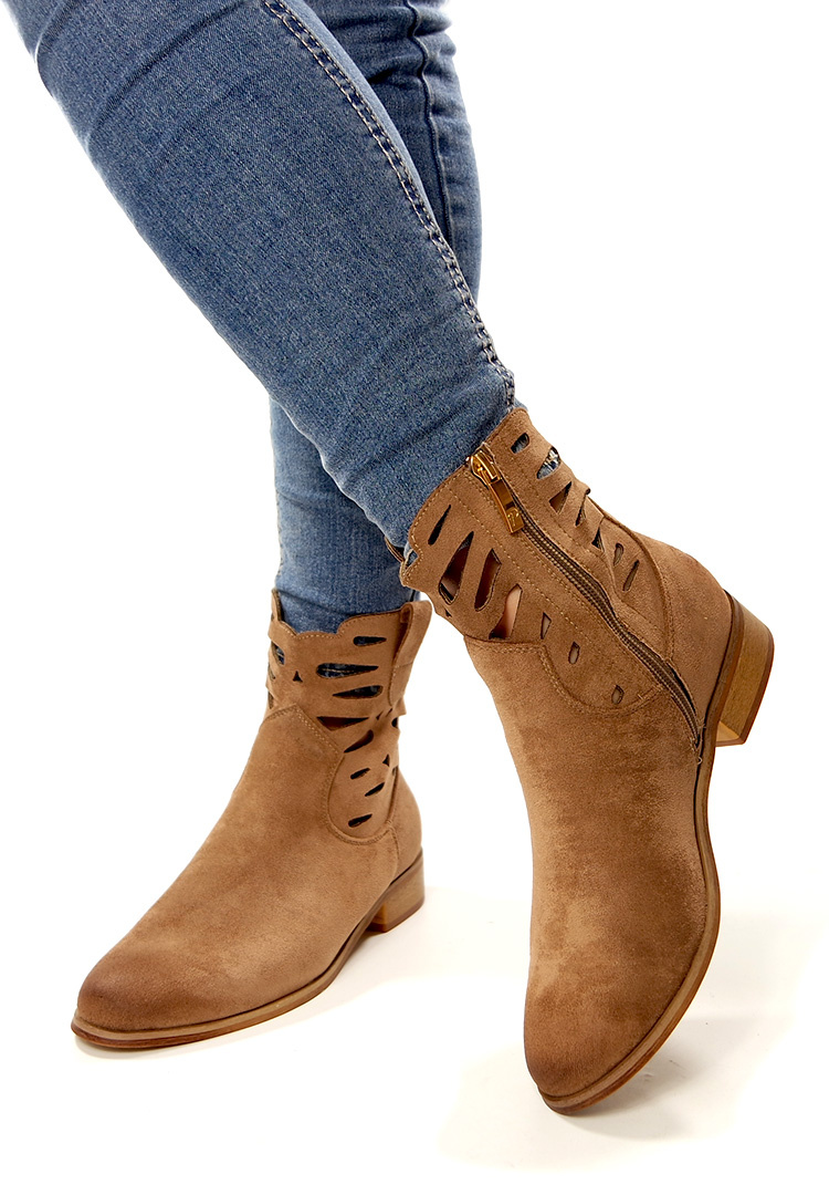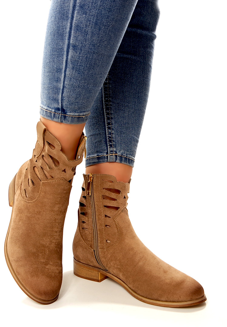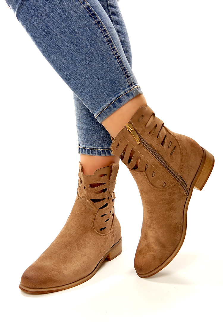Damskie brązowe krótkie botki z ażurową cholewką Potocki