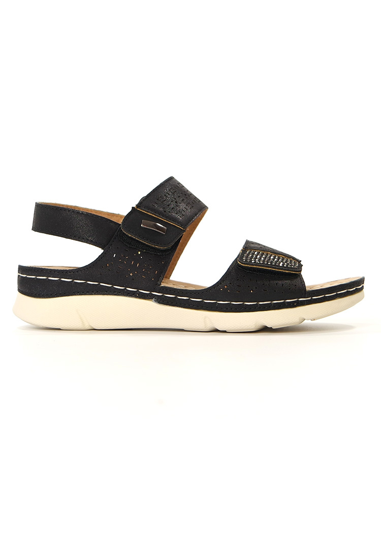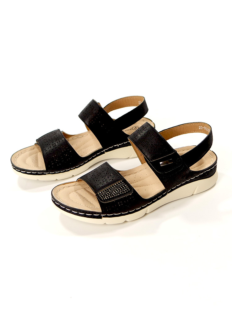 Model obuwia dla Pań ceniących sobie oryginalny styl i komfort chodzenia. Bardzo lekkie damskie sandały osadzone na koturnie. Buty wykonane z miękkiego materiału, wycinanego laserowo w drobniutki wzorki, idealnie dopasowującego się do stopy. Obuwie na wesele, komunię, studniówki, bale i inne imprezy okolicznościowe, idealne na przebranie. Pasuje zarówno do spodni, spódnicy i sukienki. Obuwie renomowanej marki Potocki. Sandały damskie z bardzo miękką wkładką ze skóry naturalnej. Idealnie przytrzymujące stopę. Zapinane na rzep na obu paskach z przodu. Damskie sandały polecane dla Pań miewających problemy z zapinaniem sprzączek w butach.
