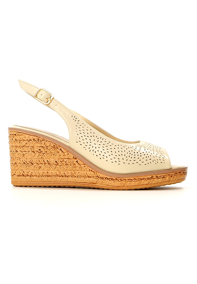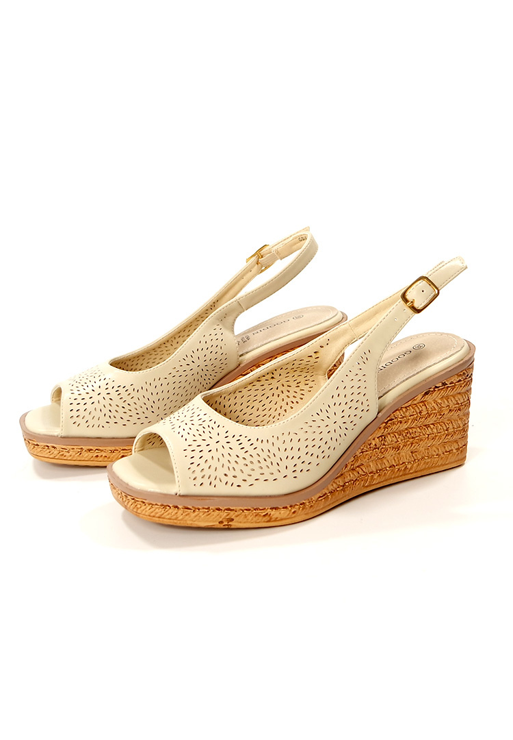 Damskie beżowe sandały na wyższym koturnie