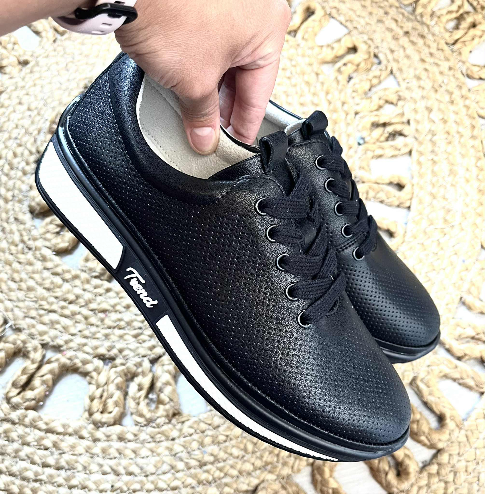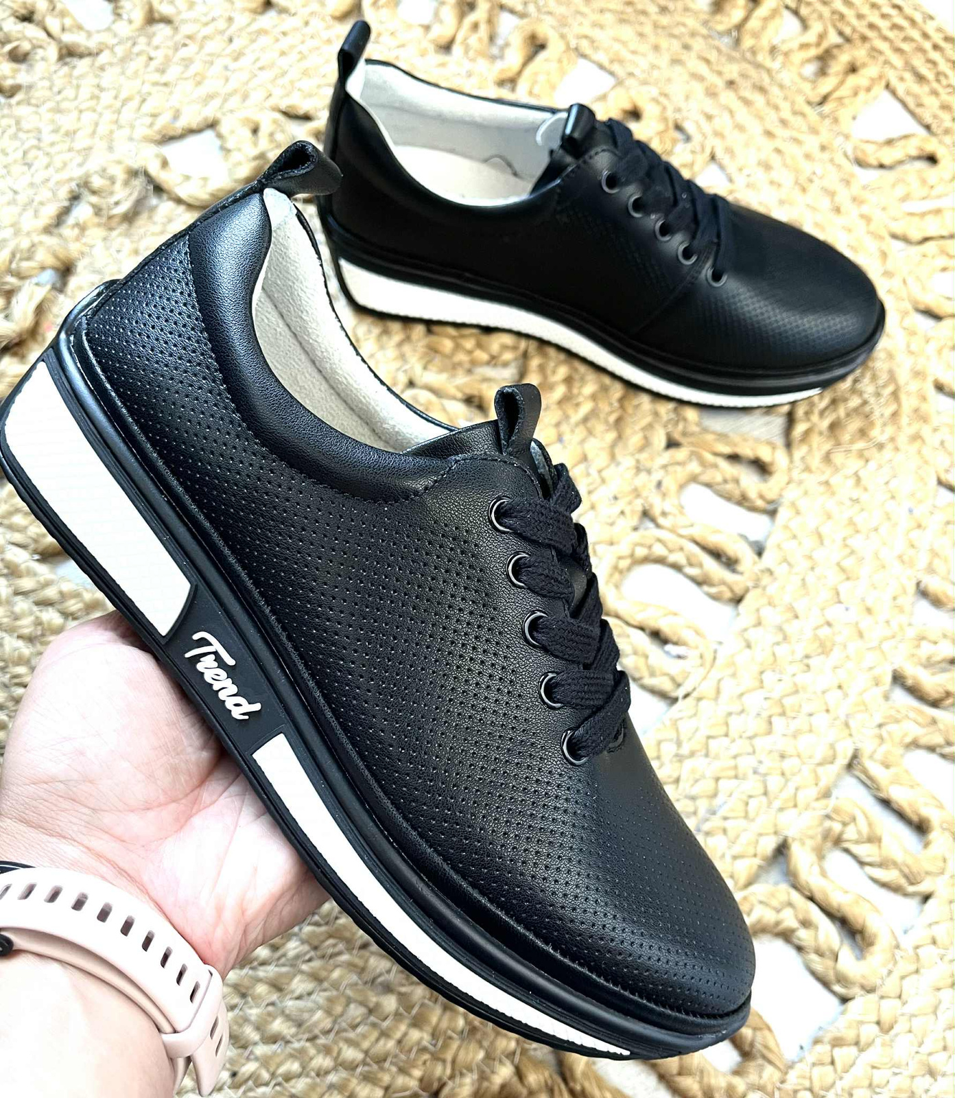 Damskie czarne bardzo lekkie sportowe obuwie ze skóry PREMIUM