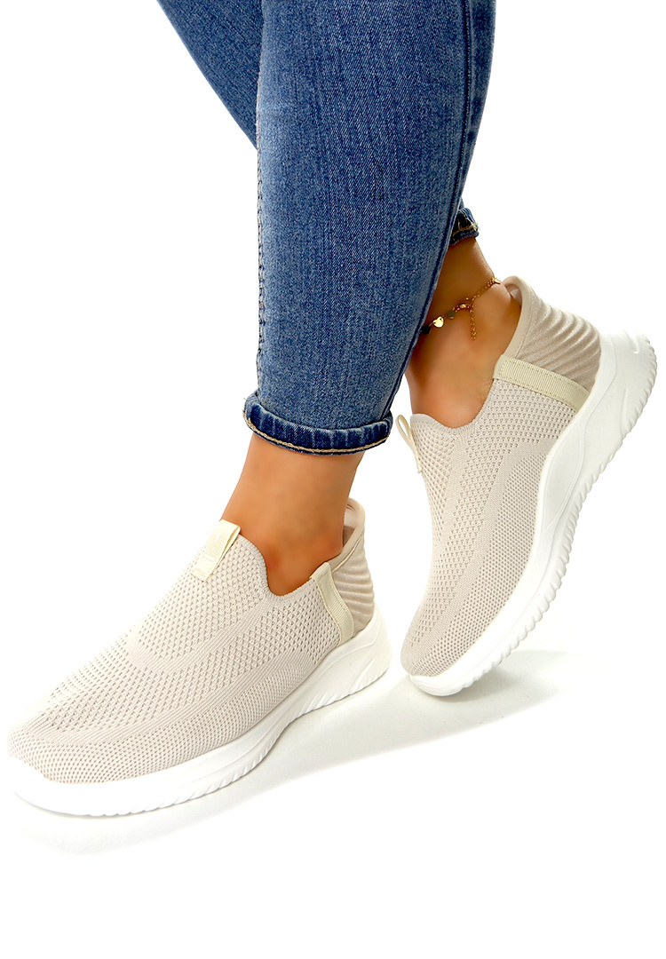 Damskie beżowe półbuty sportowe siatka bez schylania Potocki