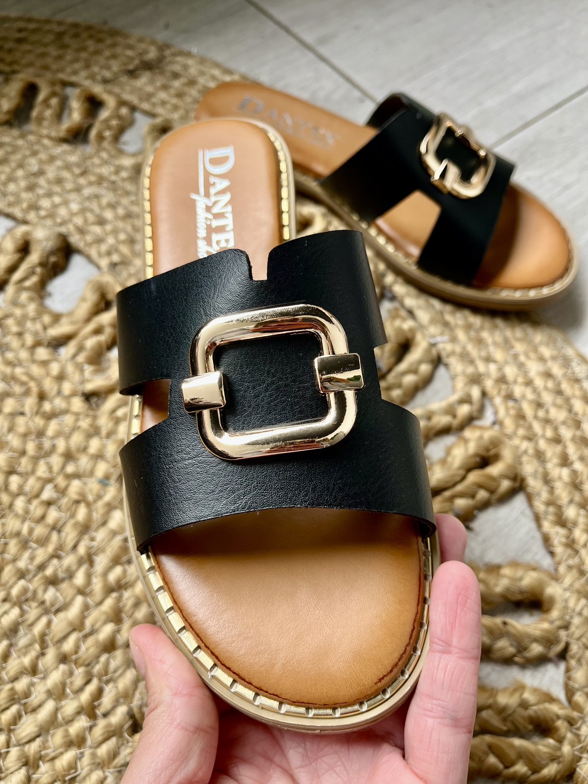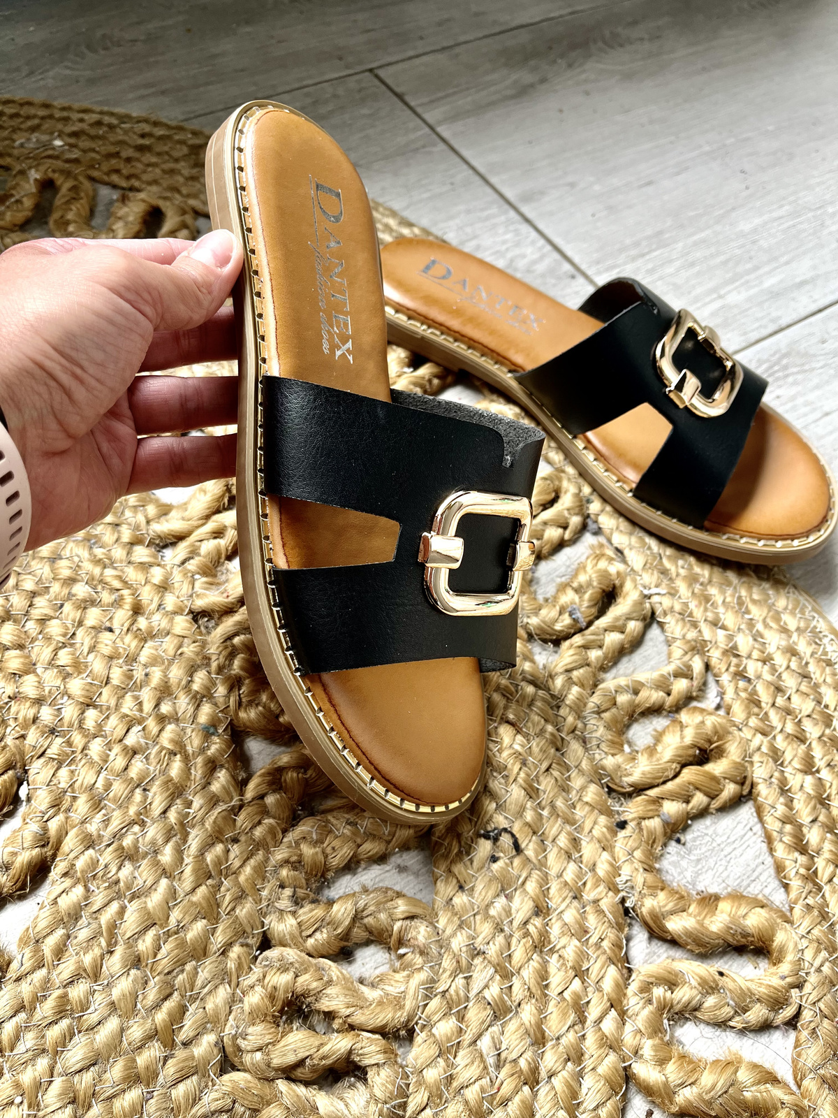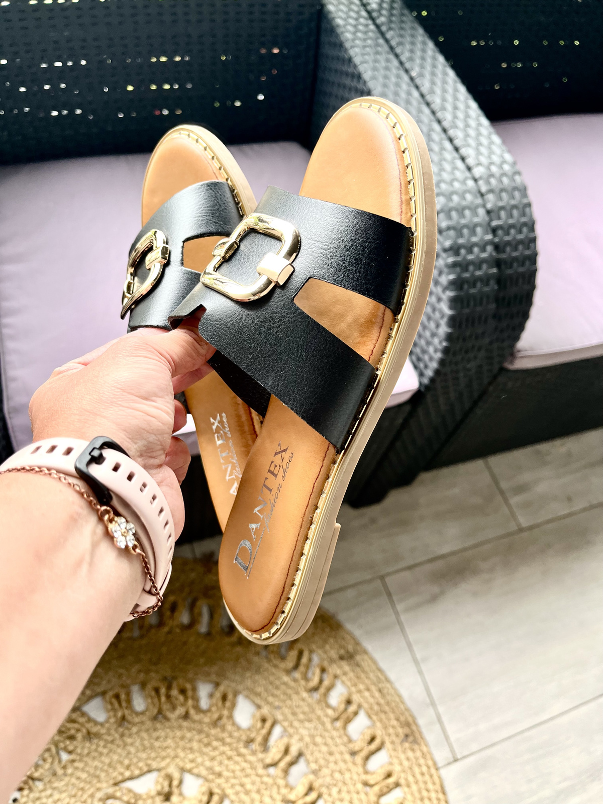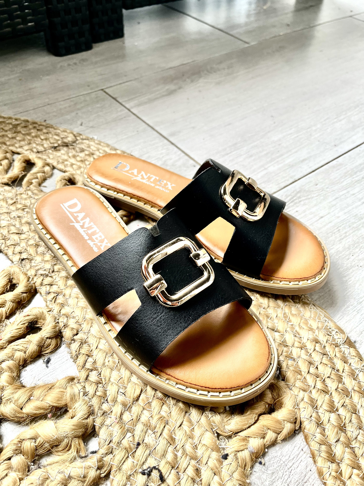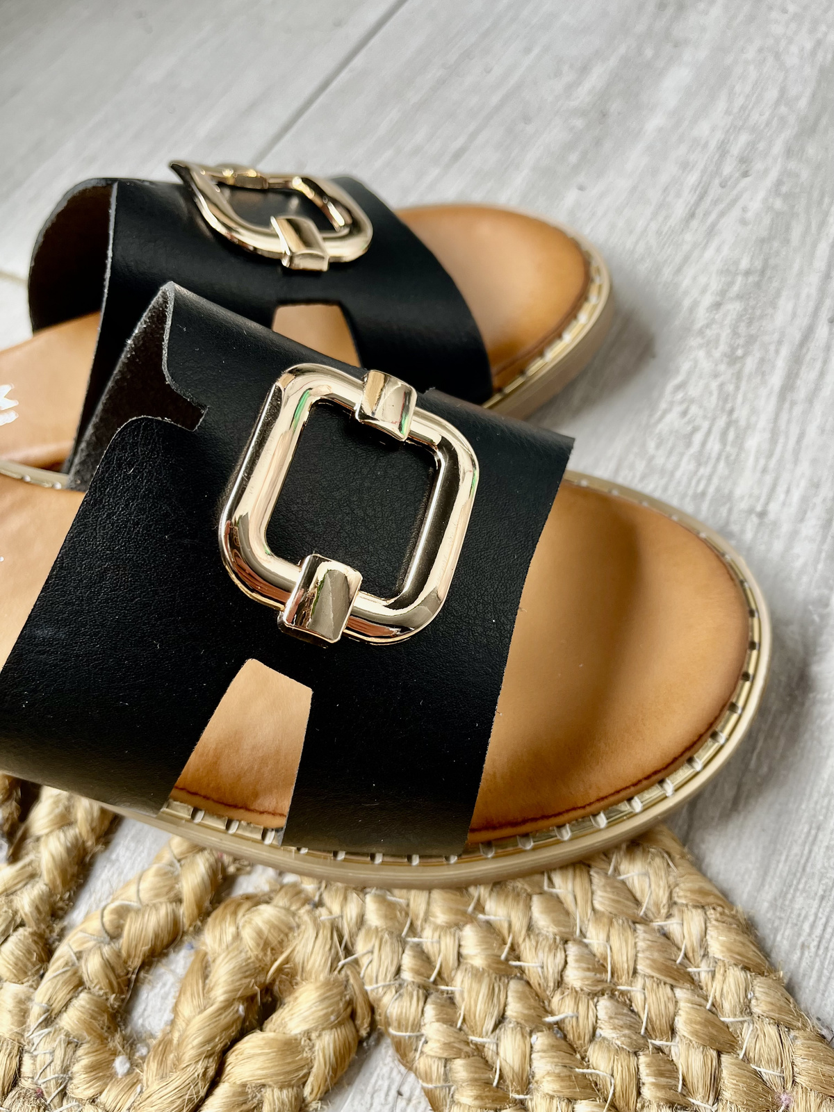 Damskie płaskie czarne klapki