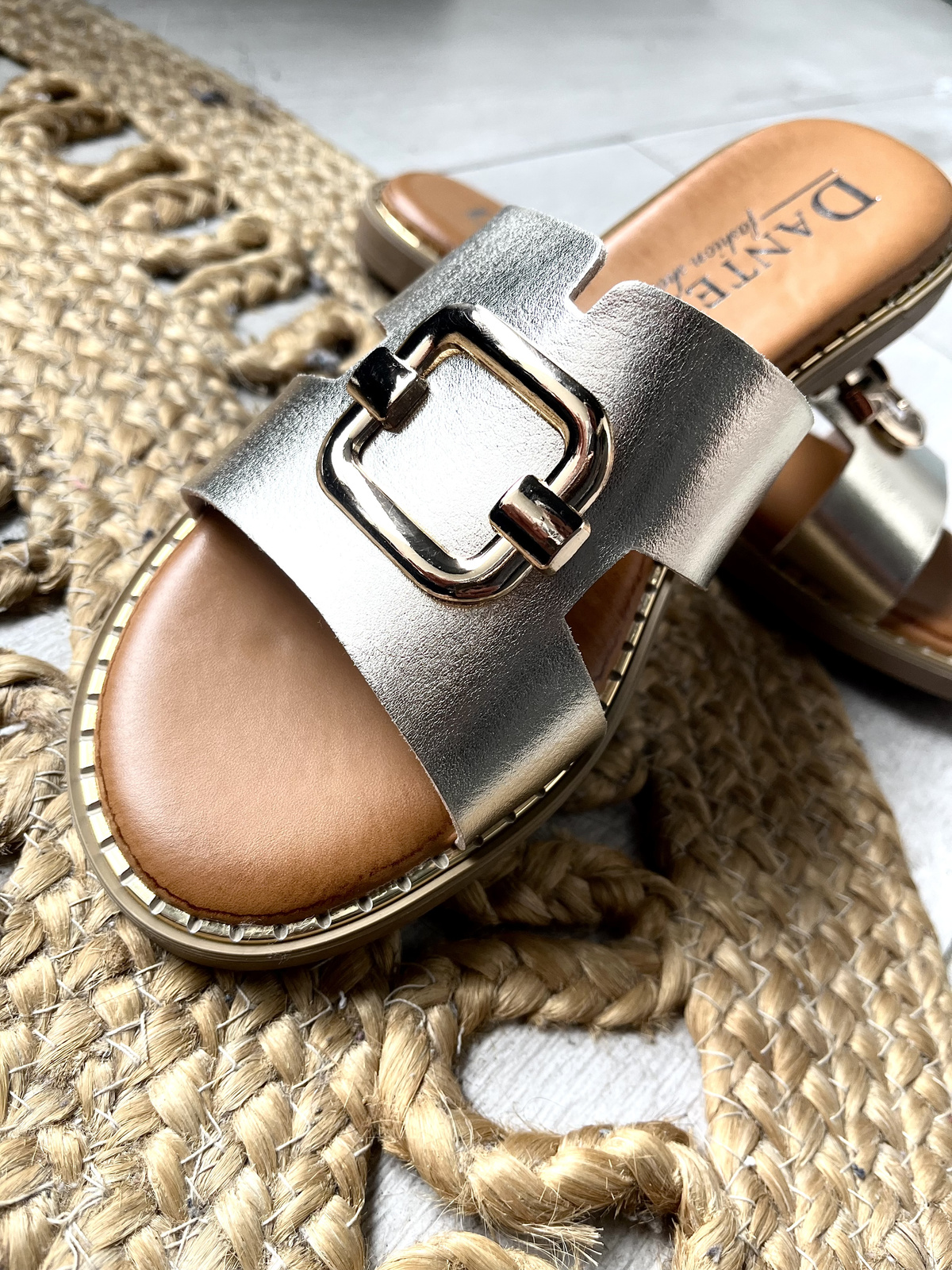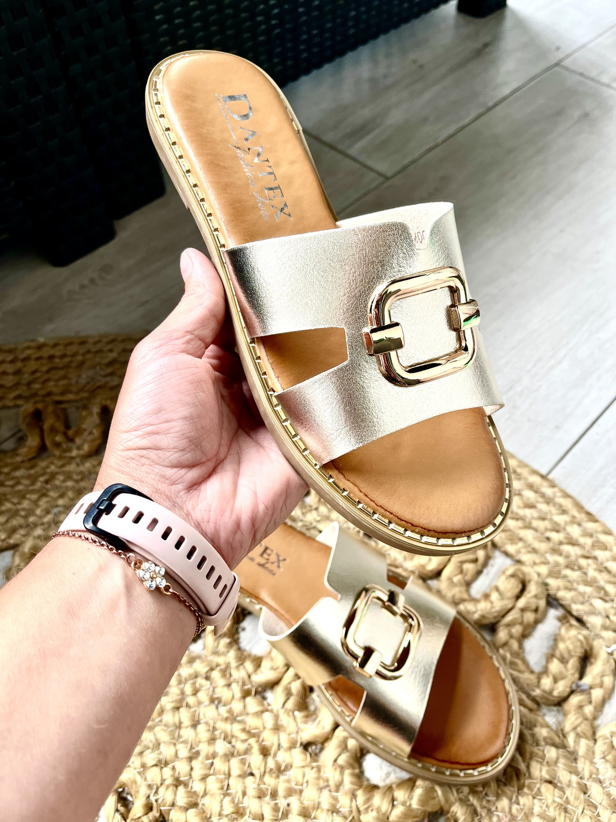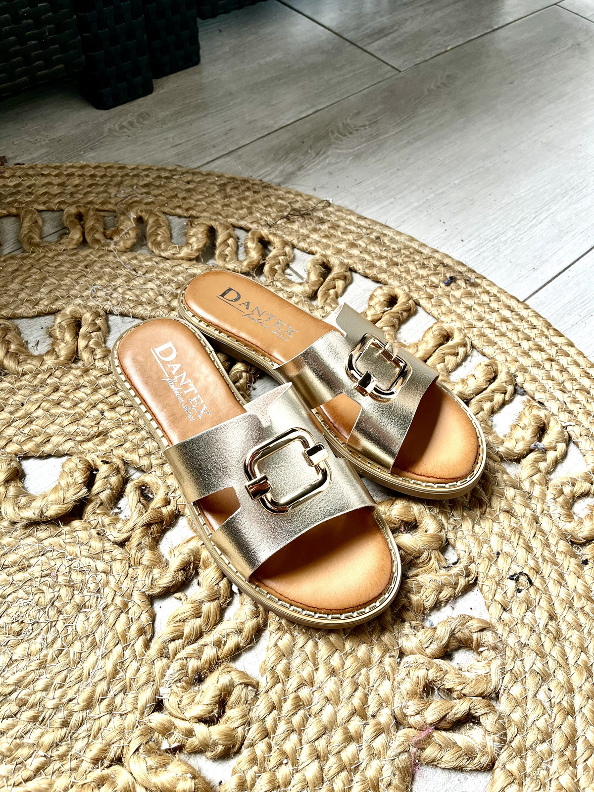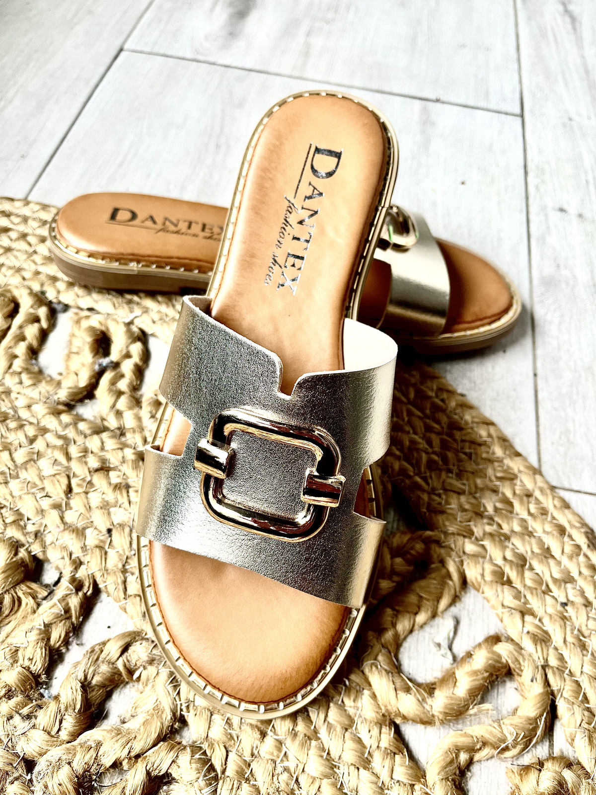 Damskie płaskie złote klapki