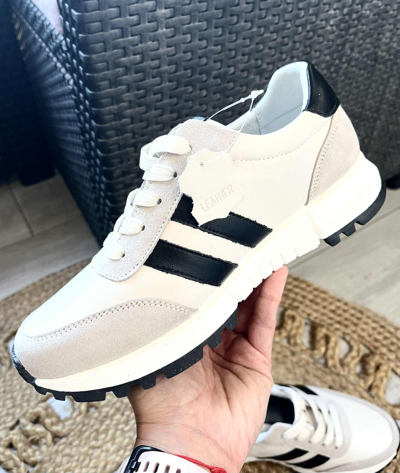 Damskie beżowe sneakersy obuwie sportowe ze skóry naturalnej