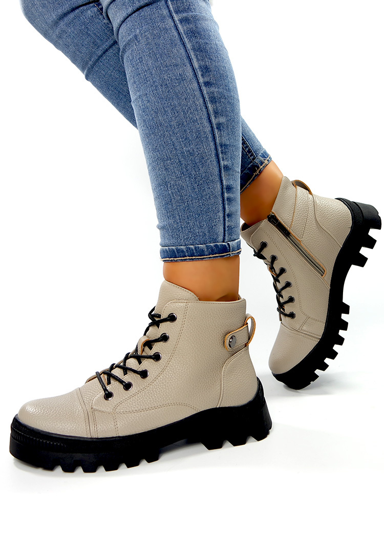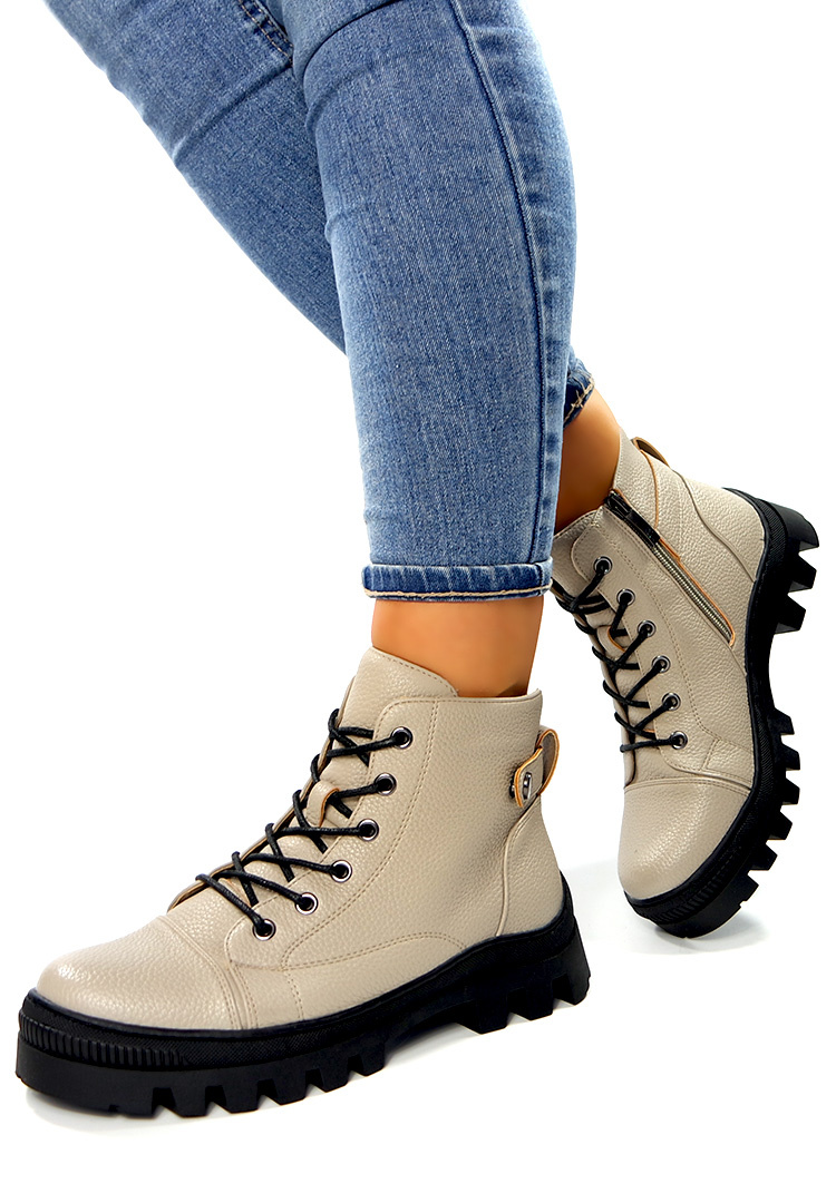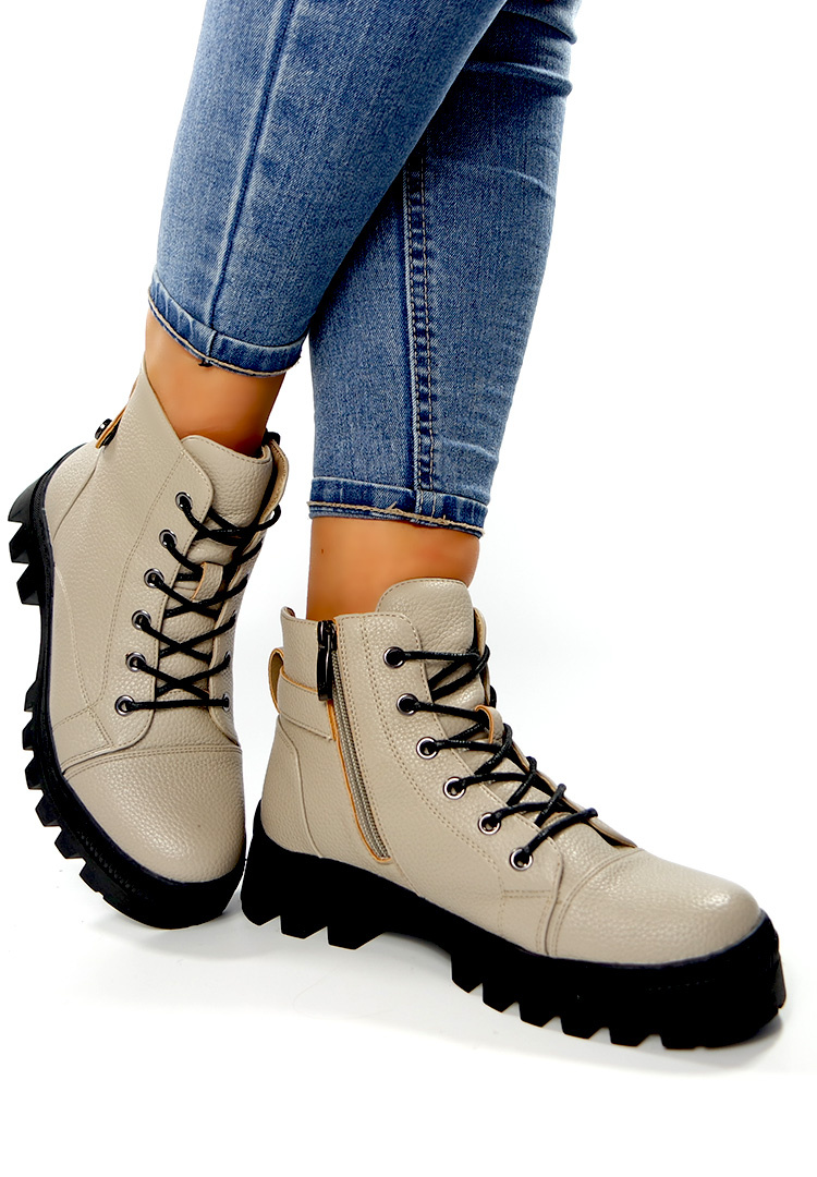 Damskie botki trapery na platformie. Wykonane w miękkim materiale. Zapinane na suwak z boku buta oraz wiązanie z przodu. Modny wzór z przeszyciami. Wytrzymała podeszwa. Szerokość u góry cholewki - ok. 28 cm i więcej. Długość cholewki ok 10 cm. Model posiada delikatne ocieplenie. Produkt renomowanej firmy Potocki. Obuwie Potocki to wysoka jakość wykonania, komfort noszenia a przy tym niska cena. Obuwie Potocki idealnie sprawdzą się do każdej stylizacji.