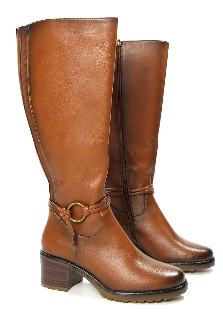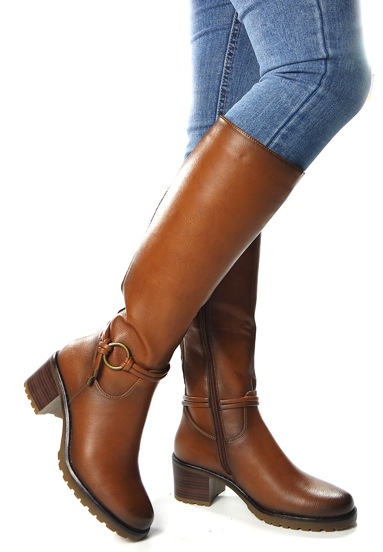 Damskie bązowe długie kozaki z gumką Potocki