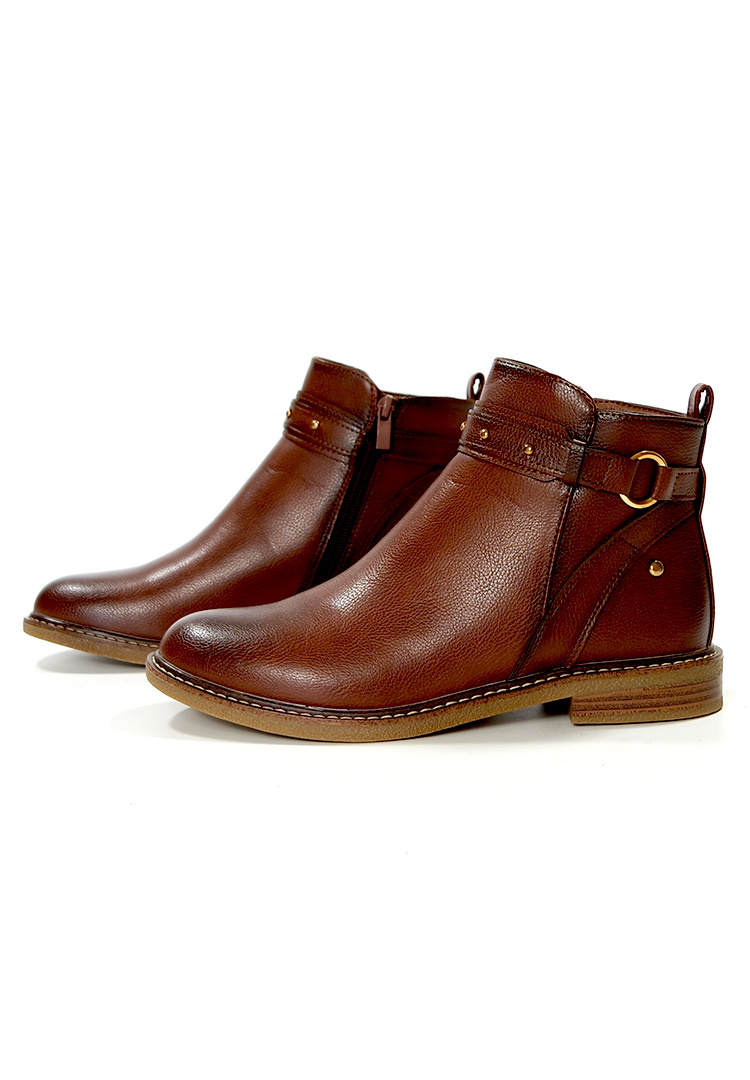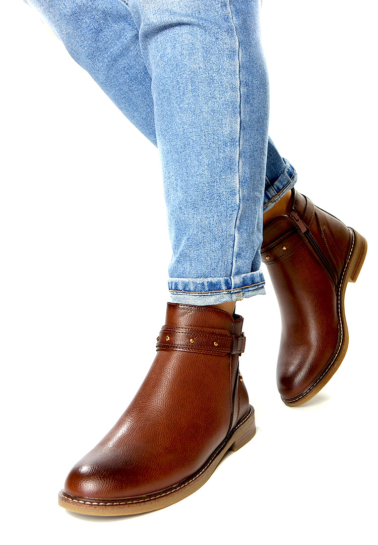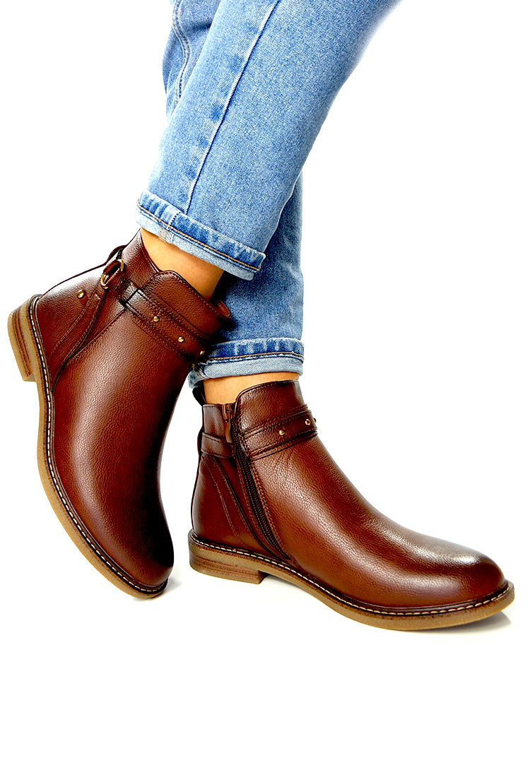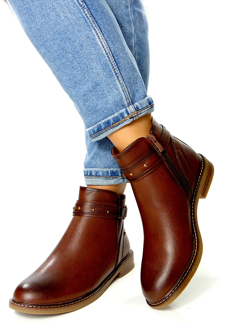 Damskie brązowe krótkie botki na niskim spodzie zapinane na zamek