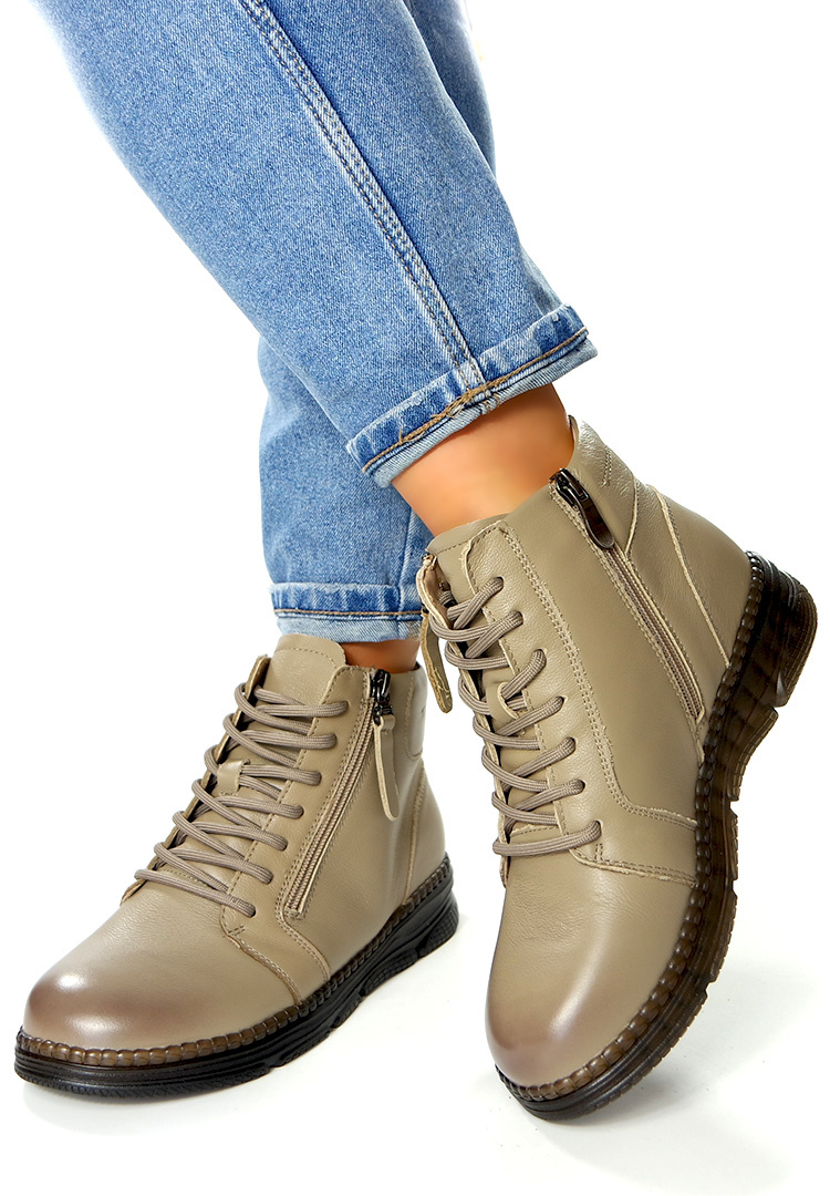Damskie beżowe camel krótkie botki ze skóry naturalnej