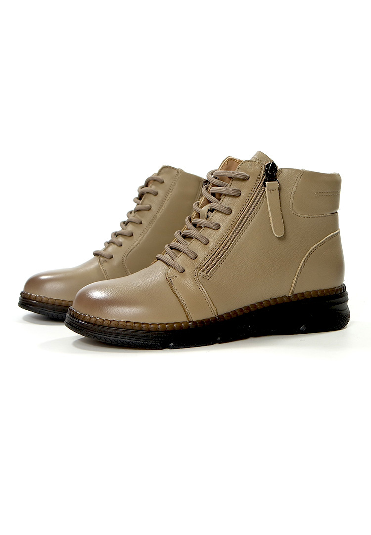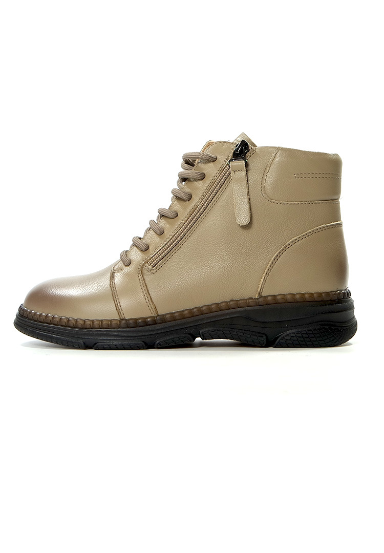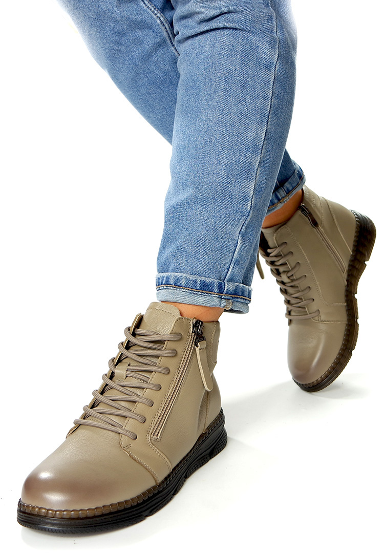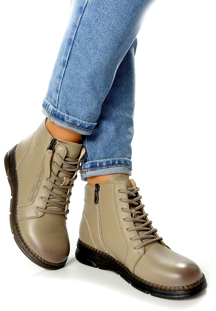 Damskie skórzane botki na sezon jesień / zima. Wykonane w miękkiej skórze naturalnej. Zapinane na suwak z boku buta, dodatkowo wiązane grubymi sznurowadłami dla lepszego dopasowania buta do szerokości stopy. Modny i wygodny wzór damskich botków. Botki na wytrzymałej karbowanej i wykonanej z gumowego tworzywa i bardzo elastycznej podeszwie. Obuwie jesienno-zimowe zakończone na półokrągło, szerokie w palcach. Długość cholewki ok 10 cm. Szerokość u góry cholewki to ok 28 cm i więcej. Model ten posiada ocieplenie. Produkt renomowanej marki. Bardzo łatwo się go zakłada i ściąga. Obuwie to cechuje wysoka jakość wykonania, komfort noszenia a przy tym niska cena. Botki damskie idealnie sprawdzą się do każdej stylizacji. Botki do sukienki, jeansów i długich spódnic. Klasyczne botki damskie ciepłe na zimowe dni. Rozmiar standardowy. Solidne damskie obuwie zimowe na gumowej podeszwie z cholewką wykonaną ze skóry naturalnej.