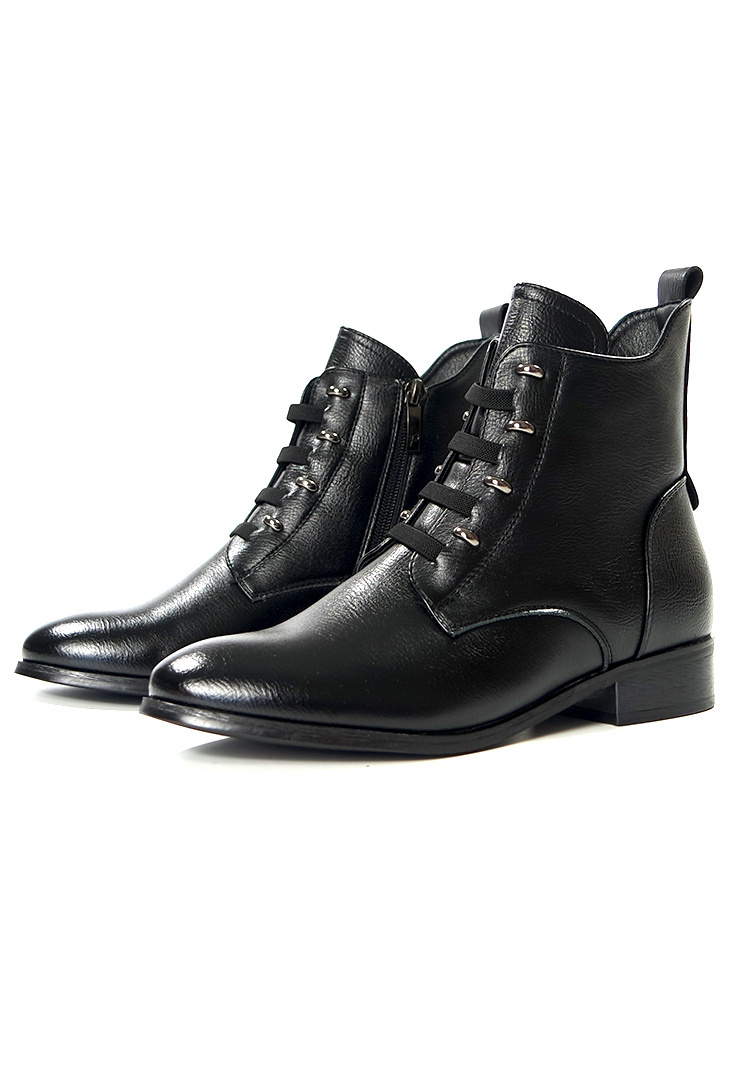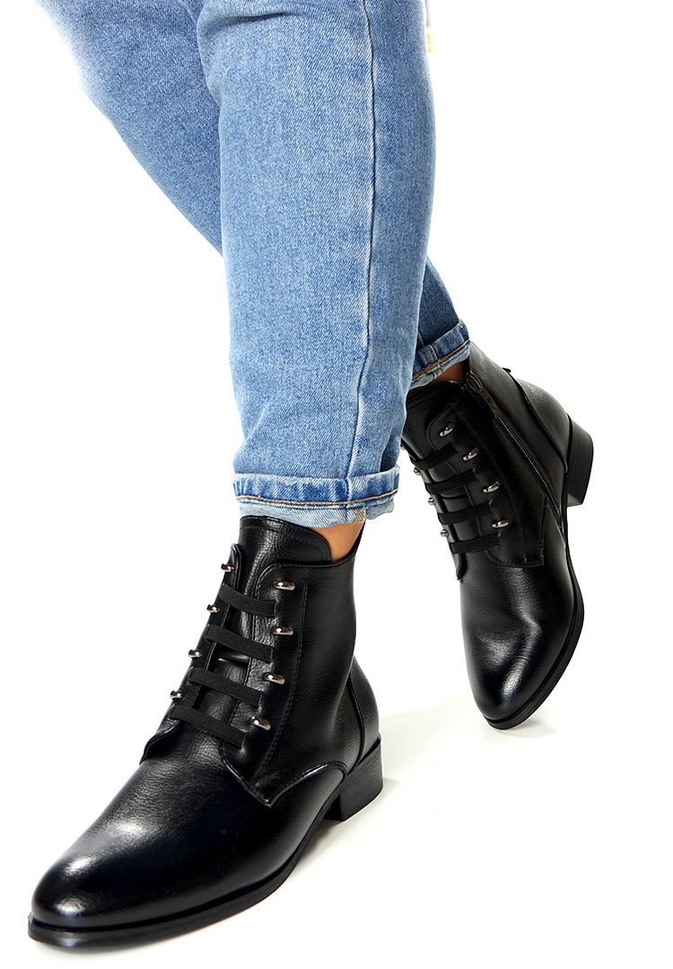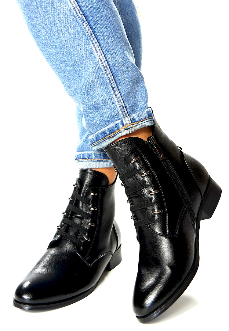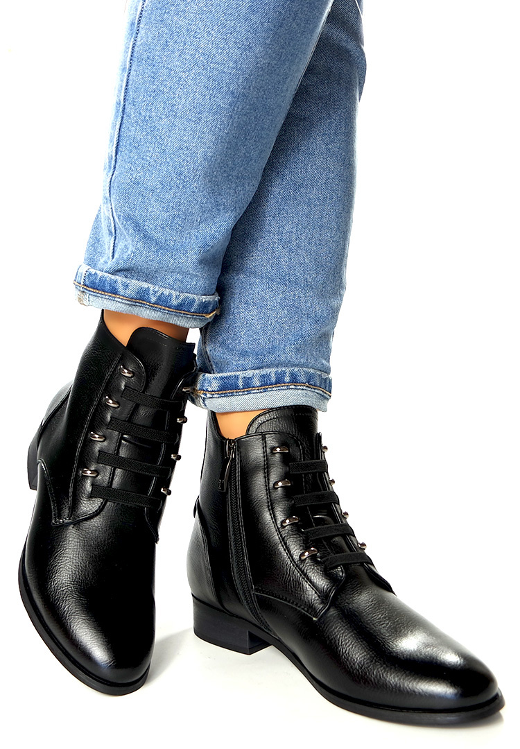 Damskie czarne krótkie botki na na niskiej podeszwie Potocki