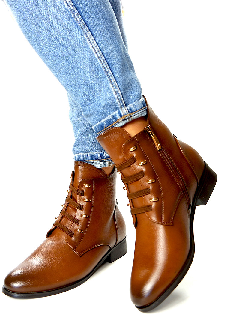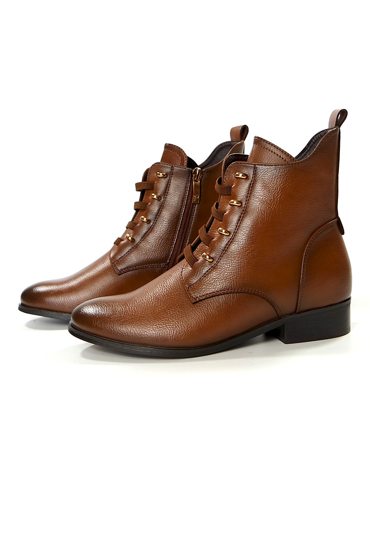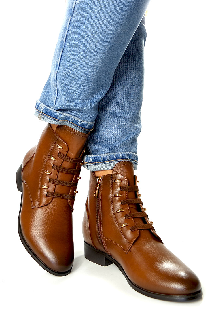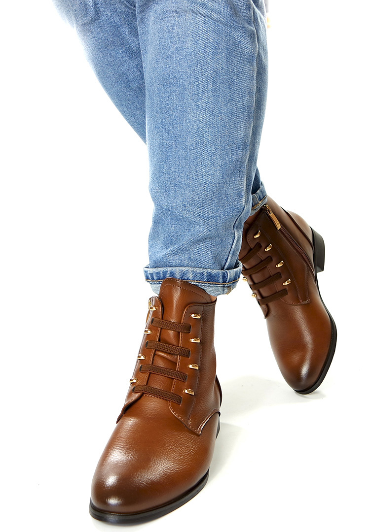 Damskie brązowe krótkie botki na na niskiej podeszwie Potocki