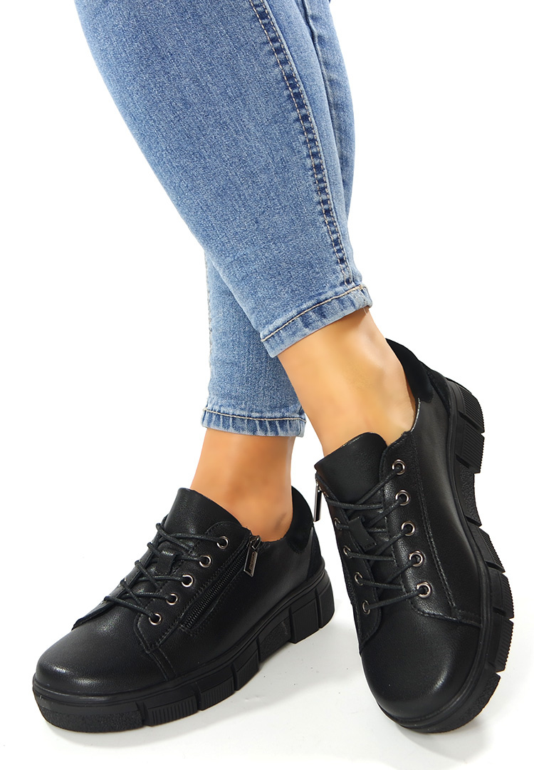 Model obuwia dla Pań ceniących sobie oryginalny styl i komfort chodzenia. Damskie skórzane wiązane i zapinane na zamek półbuty na platformie. Wzór elegancki i bardzo wygodny, posiada miękką wkładkę ze skóry naturalnej w środku. Obuwie idealne do pracy i na wyjścia. Pasuje zarówno do spodni, jak i cienkiej spódnicy. Obuwie renomowanej marki. Wygodne, wykonane z bardzo miękkiego skórzanego wysokiej jakości materiału. Półbuty damskie z profilowaną wkładką. Idealne wygodne buty na jesień. Zabudowane z przodu utrzymują stopę stabilną. Nie musisz ich sznurować za każdym razem - obuwie posiada zamek, dzięki któremu zakłada i ściąga się je bardzo szybko. Sznurowadła pozwalają na dopasowanie szerokości obuwia do stopy i jeszcze bardziej utrzymują stopę stabilną.
