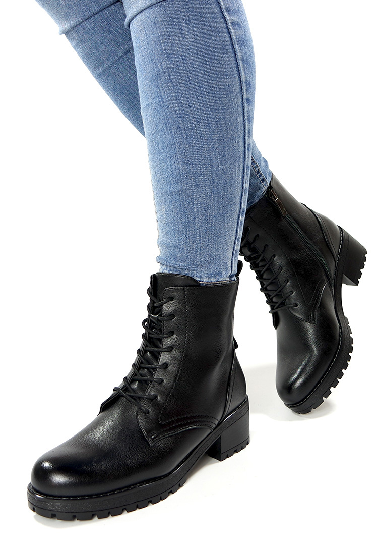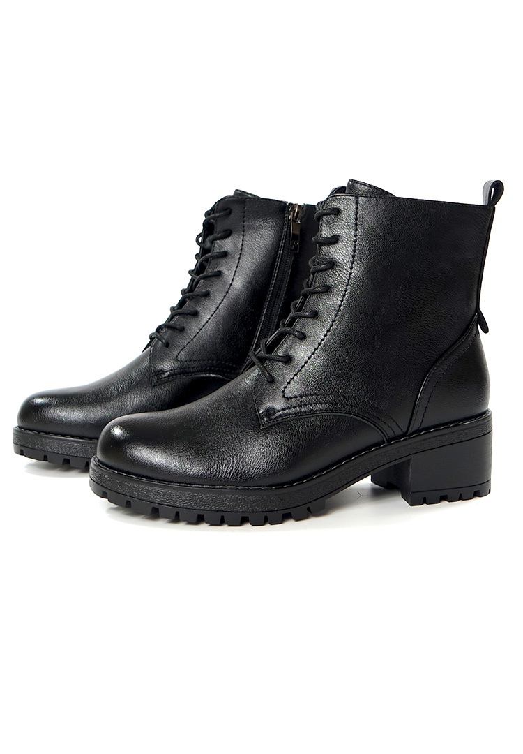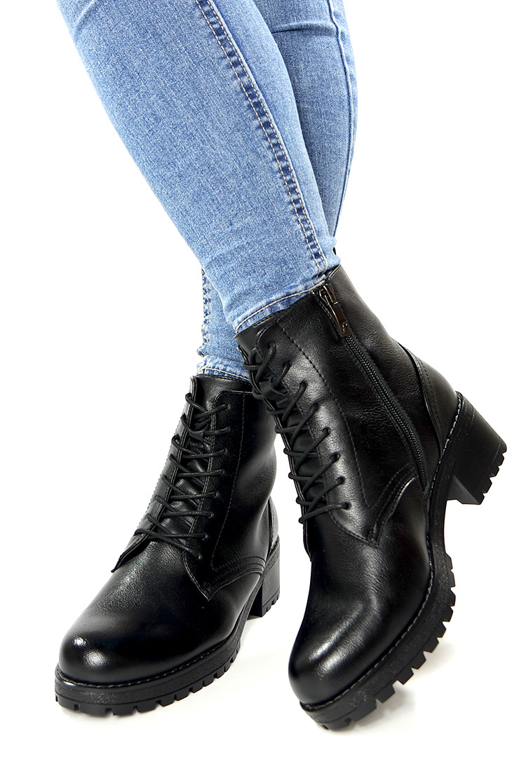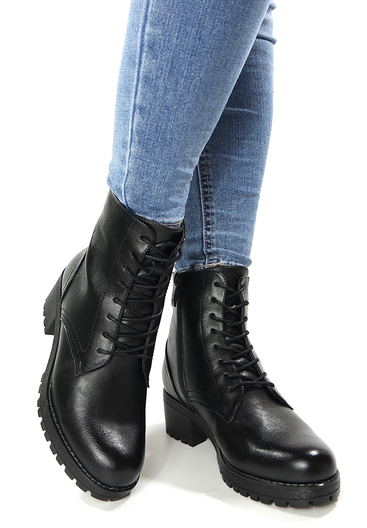 Damskie krótkie botki na sezon jesień / zima. Wykonane w miękkiej skórze ekologicznej. Zapinane na suwak z boku buta, dodatkowo posiadają sznurowanie dla lepszego dopasowania buta do szerokości stopy. Modny i wygodny wzór damskich botków z wyższą wiązaną cholewką. Botki na wytrzymałej grubej podeszwie z obcasem typu klocek. Obuwie jesienno-zimowe zakończone na półokrągło. Długość cholewki ok 13 cm. Szerokość u góry cholewki to ok 28 cm i więcej. Model ten posiada delikatne ocieplenie. Produkt renomowanej marki Potocki. Bardzo łatwo się go zakłada i ściąga. Obuwie to cechuje wysoka jakość wykonania, komfort noszenia a przy tym niska cena. Botki damskie idealnie sprawdzą się do każdej stylizacji. Botki do sukienki, jeansów i długich spódnic. Klasyczne botki damskie ciepłe na zimowe dni. Rozmiar standardowy. Solidne damskie obuwie.