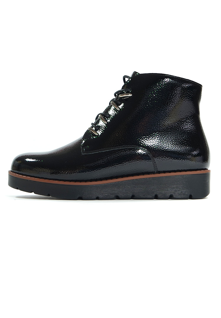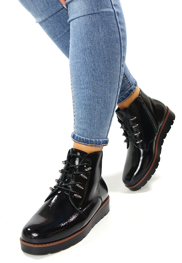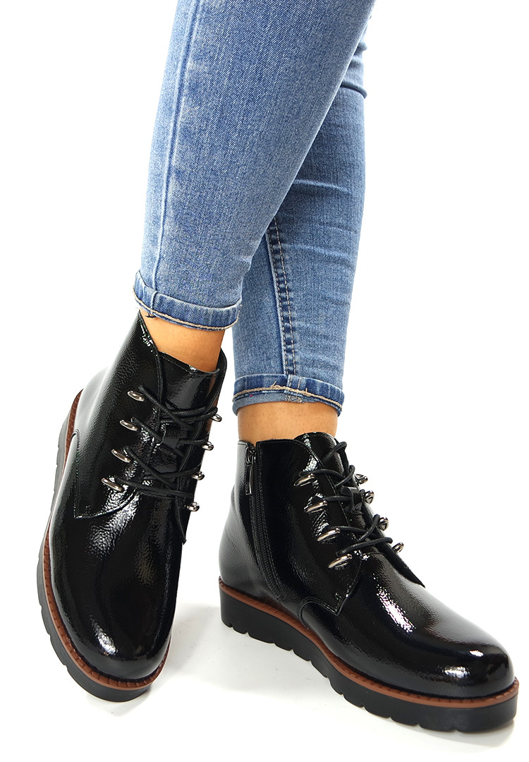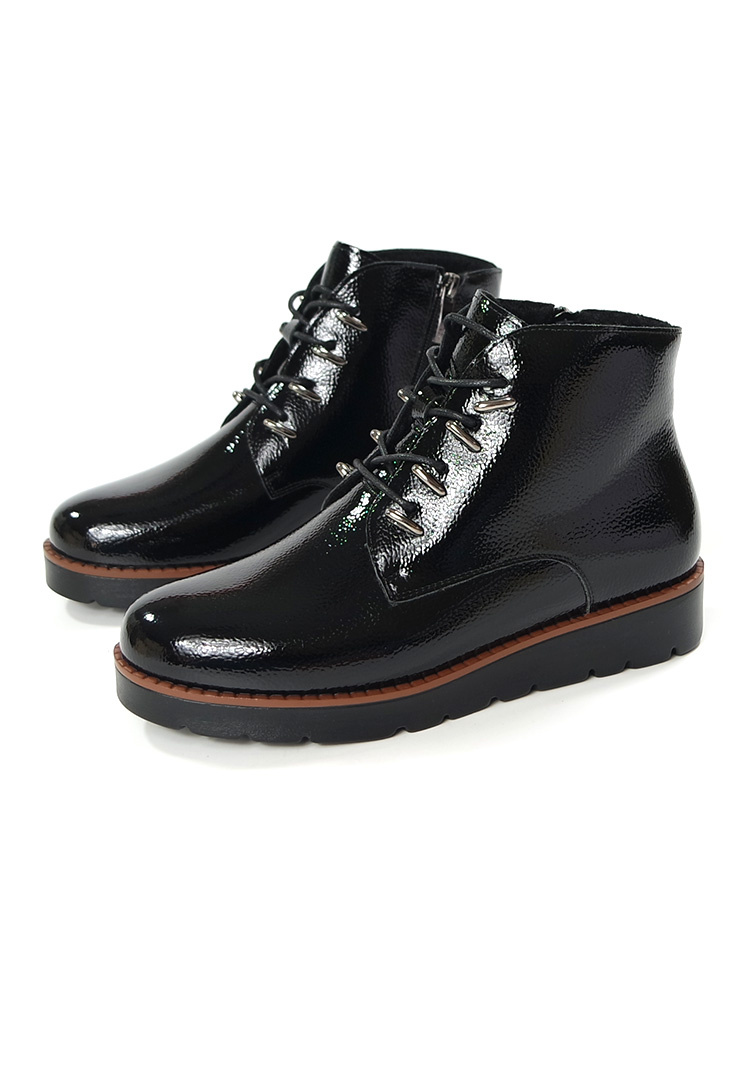 Damskie czarne lakier botki 19360 na platformie Potocki