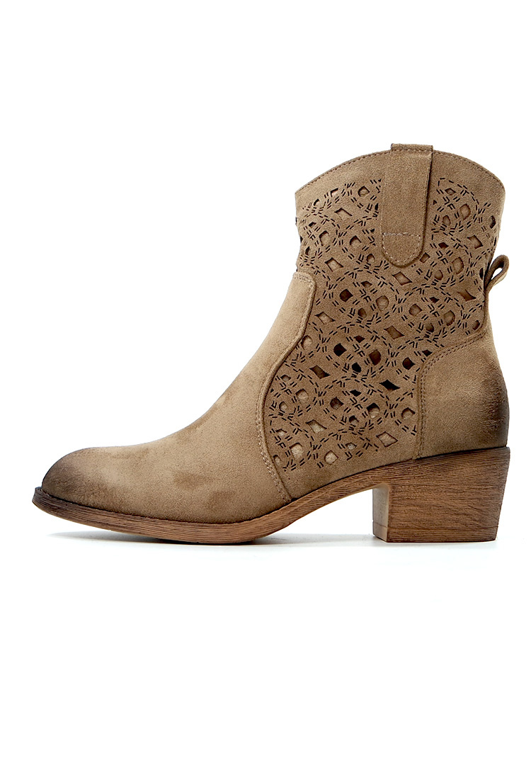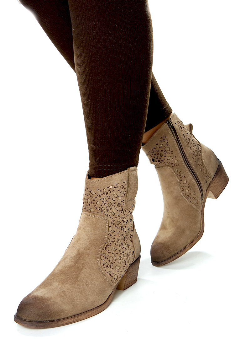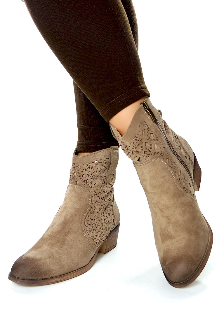 Damskie beżowe zamszowe krótkie botki kowbojki na obcasie 12747 Potocki