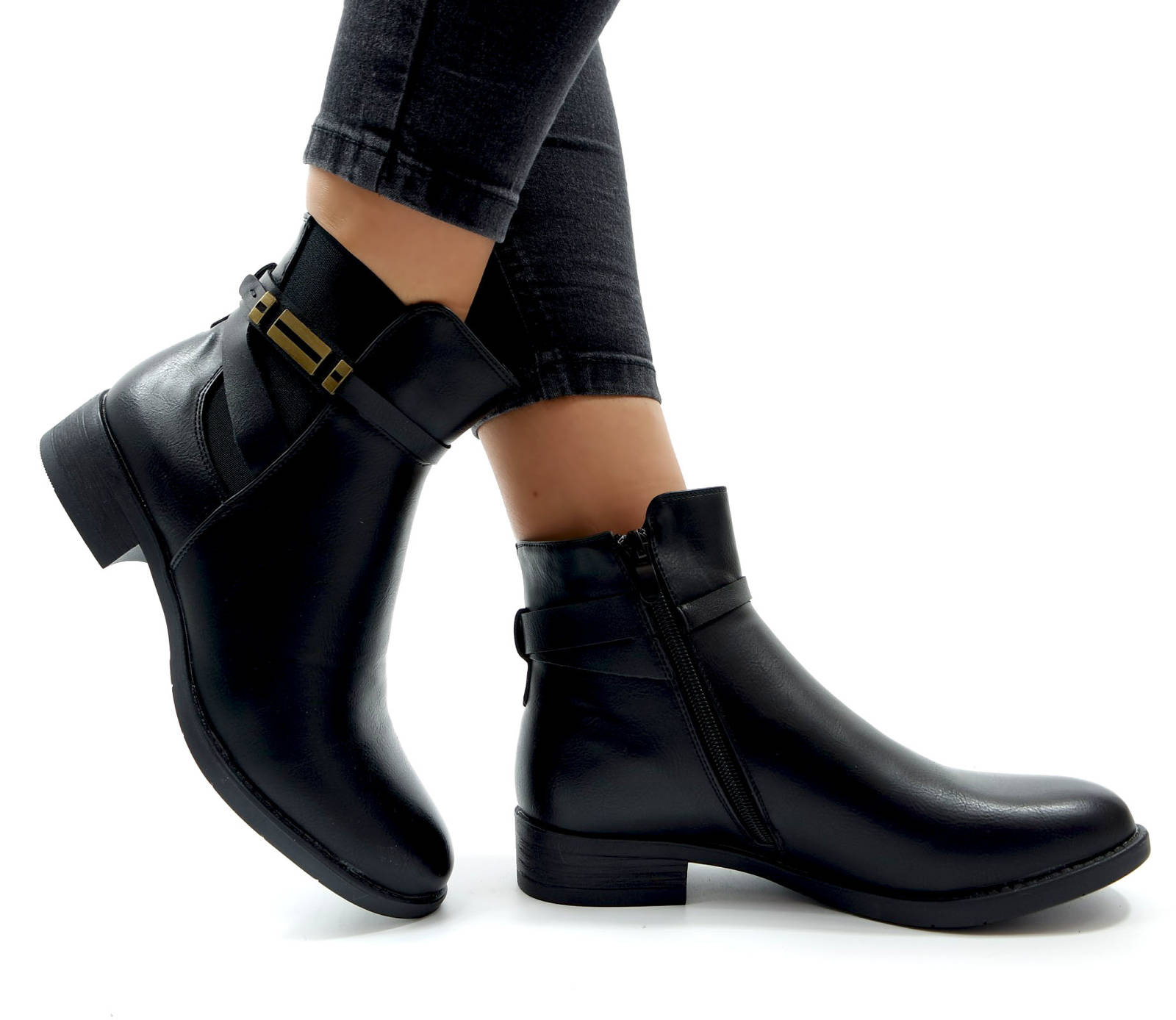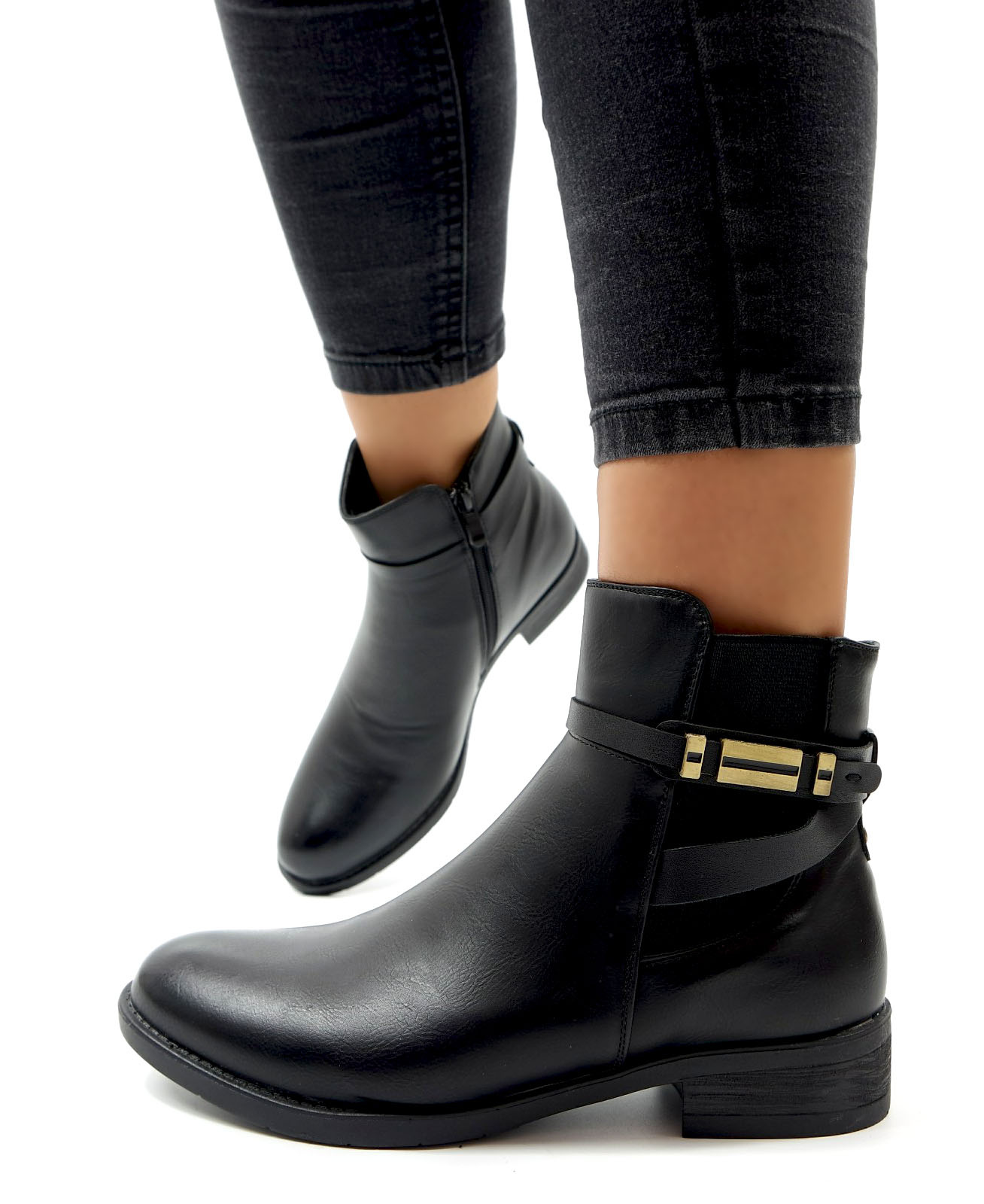Damskie czarne botki z gumą