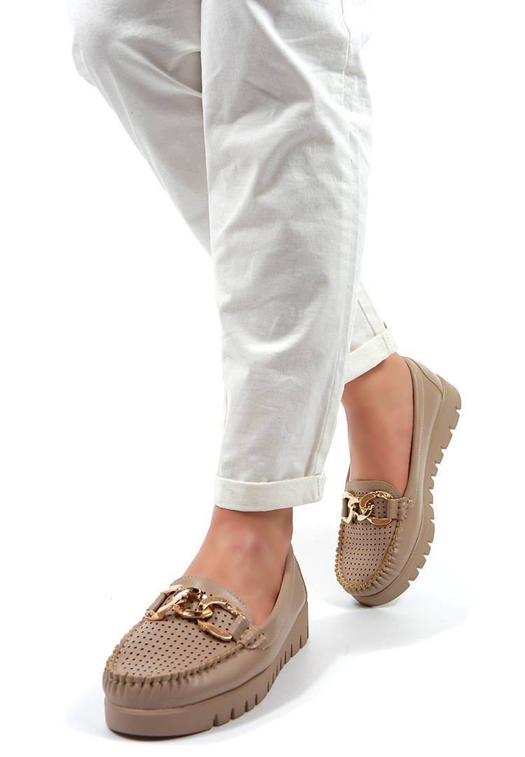 Opinie o Damskie beżowe lekkie mokasyny półbuty z łańcuchem