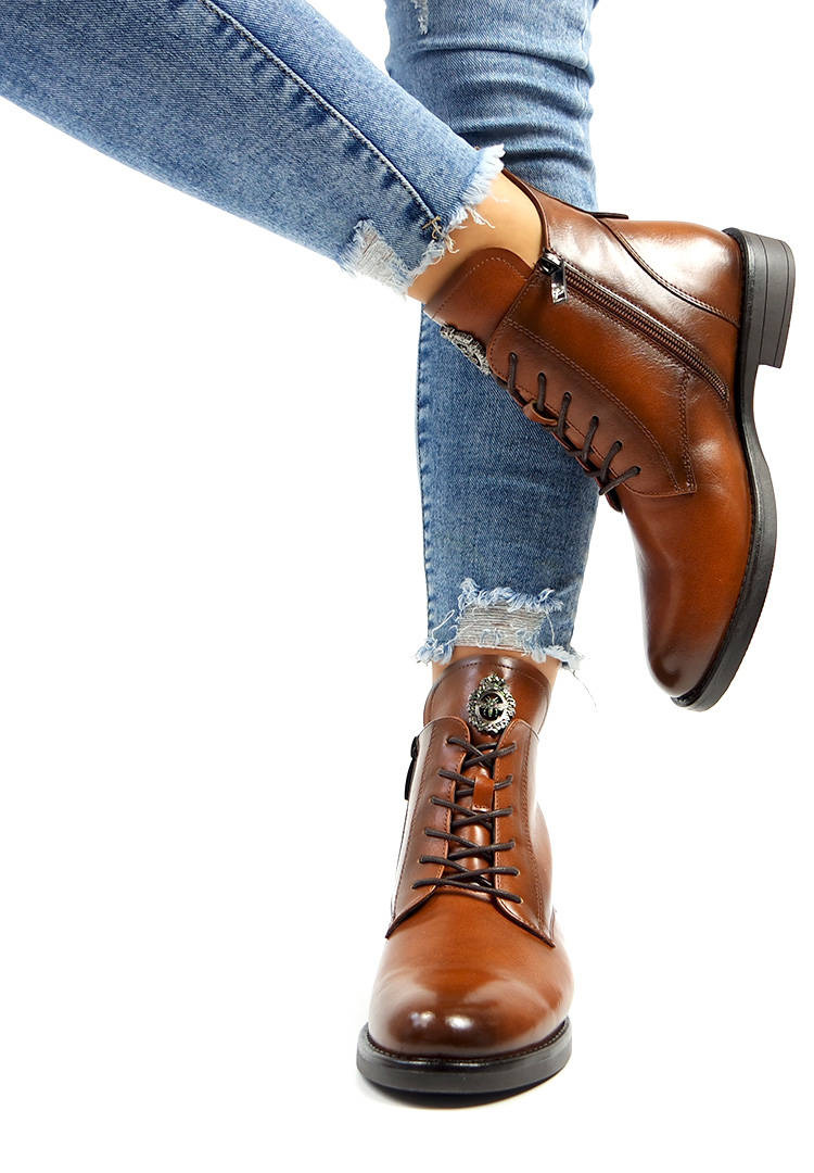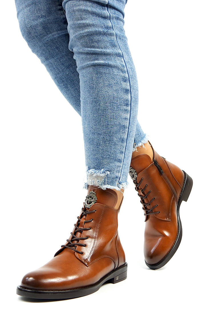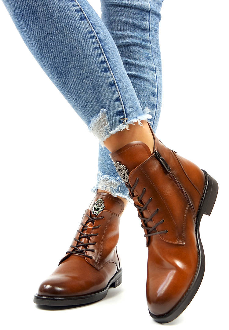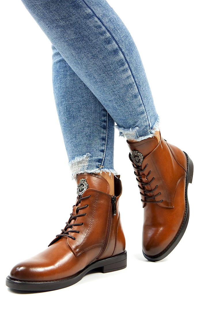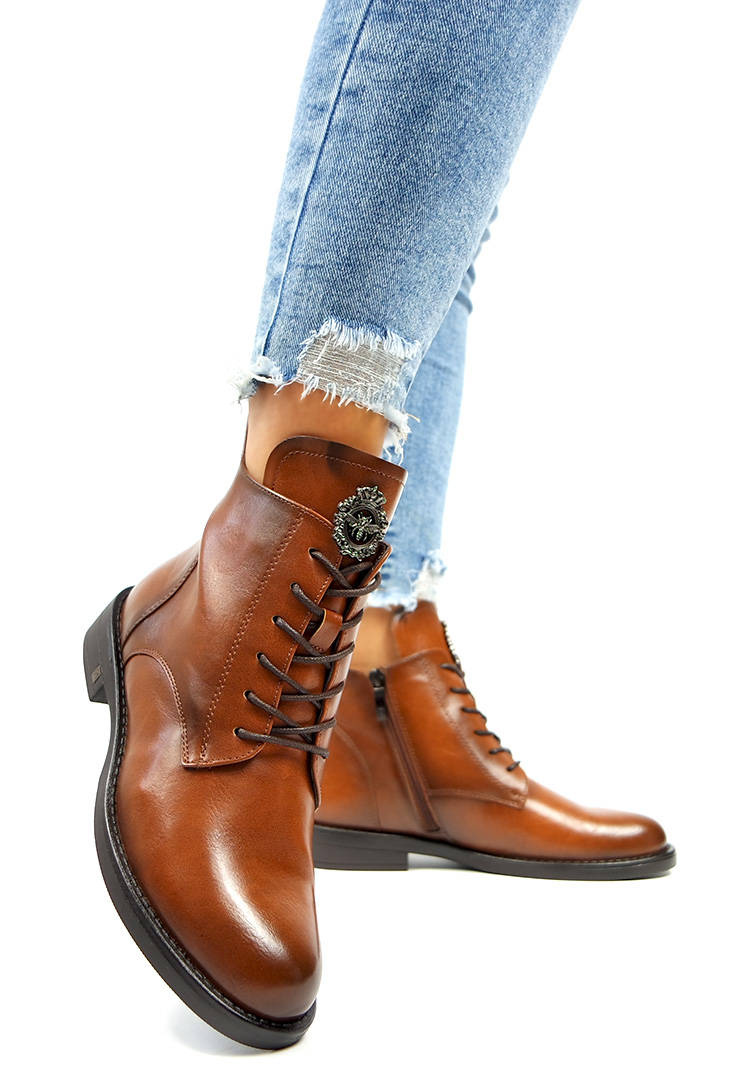 Damskie modne botki na klocku. Wykonane w miękkim licowym materiale. Zapinane na suwak z boku buta, dodatkowo wiązane, dzięki czemu łatwo dopasujesz szerokość cholewki do nogi. Modny wzór z przeszyciami i ozdobną broszką na przodzie. Wytrzymała podeszwa. Szerokość u góry cholewki - ok. 28 cm i wiecej. Długość cholewki 14cm. Model posiada delikatne ocieplenie. Produkt renomowanej firmy Potocki. Obuwie Potocki to wysoka jakość wykonania, komfort noszenia a przy tym niska cena. Obuwie Potocki idealnie sprawdzą się do każdej stylizacji.