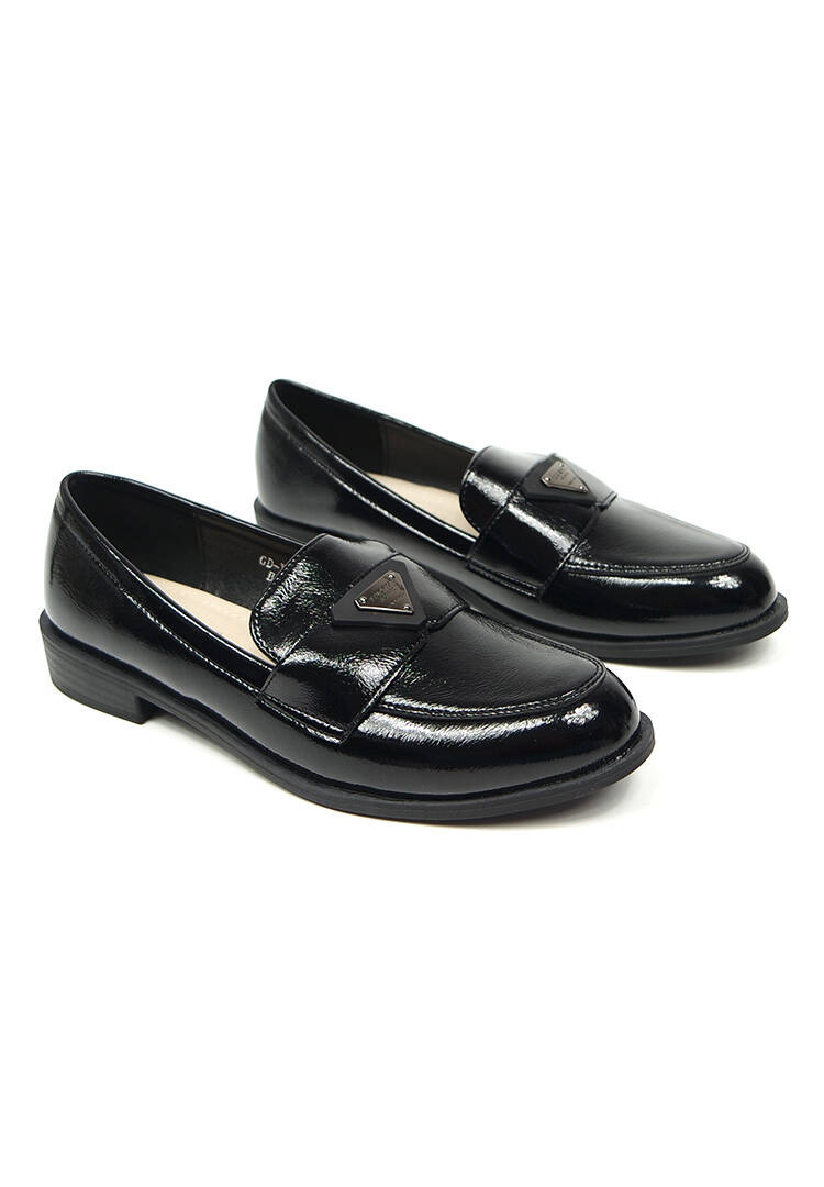 Model obuwia dla Pań ceniących sobie oryginalny styl i komfort chodzenia. Prosty fason z delikatną ozdobą na przodzie. Obuwie osadzone na klockowym obcasie, z miękką wkładką ze skóry naturalnej w środku. Buty wykonane w bardzo miękkim lakierowanym materiale. Zakończone w delikatny szpic. Obuwie marki Goodin.
